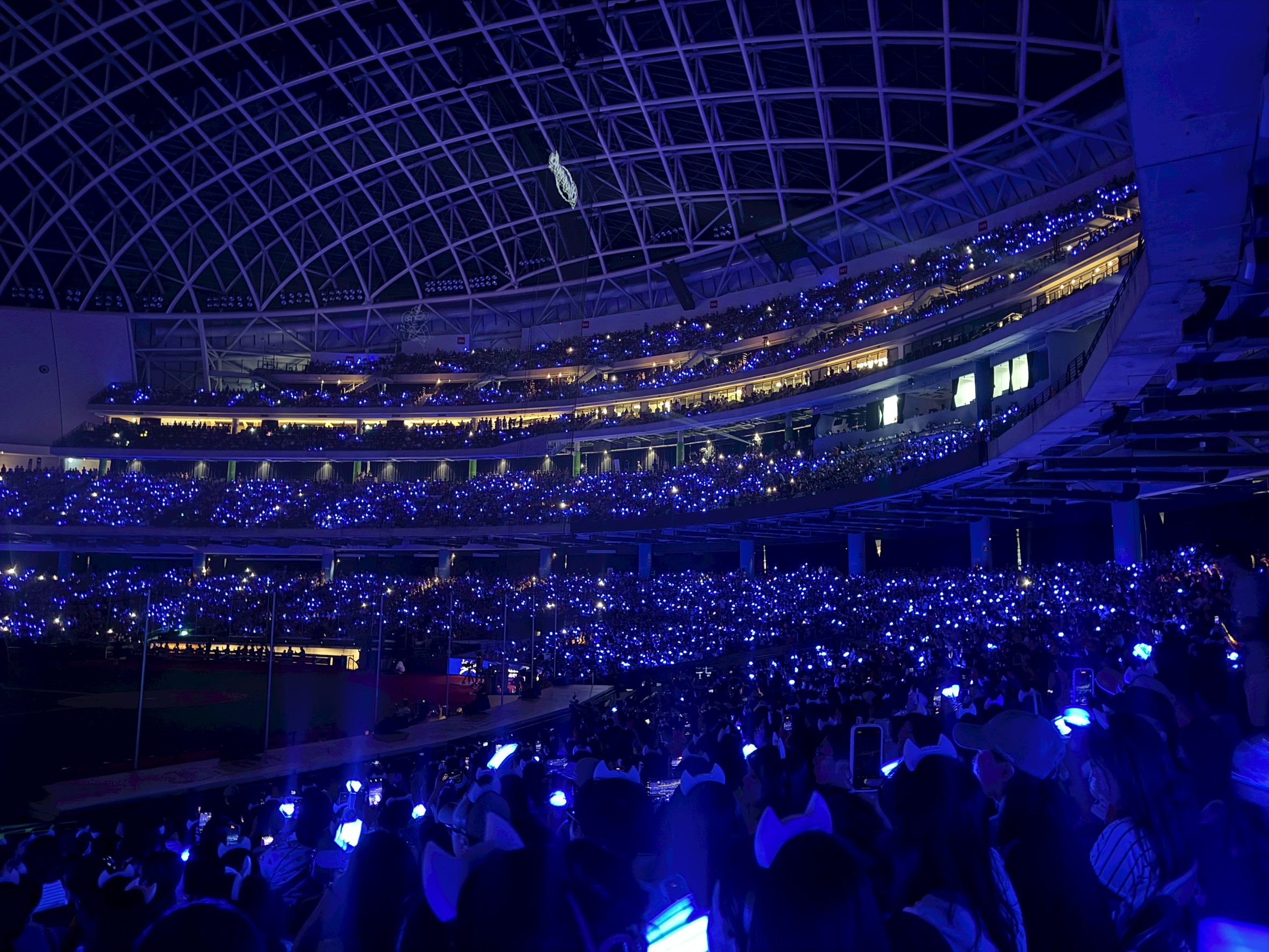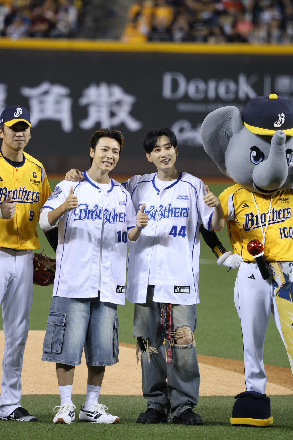 韓流帝王Super Junior小分隊D&E昨(3日)受邀出席中信兄弟k歌主題日,擔任開球及賽後演出嘉賓,吸引大批粉絲到場支持。值得一提的是,賽後演出一登場,整座球場瞬間被點亮成一片「寶藍海」,浪漫而震撼的景象相當壯觀,兩人也拿出滿滿誠意,不僅連唱7首經典神曲,還將中信兄弟的應援舞巧妙融入編舞中,氣氛嗨到最高點。