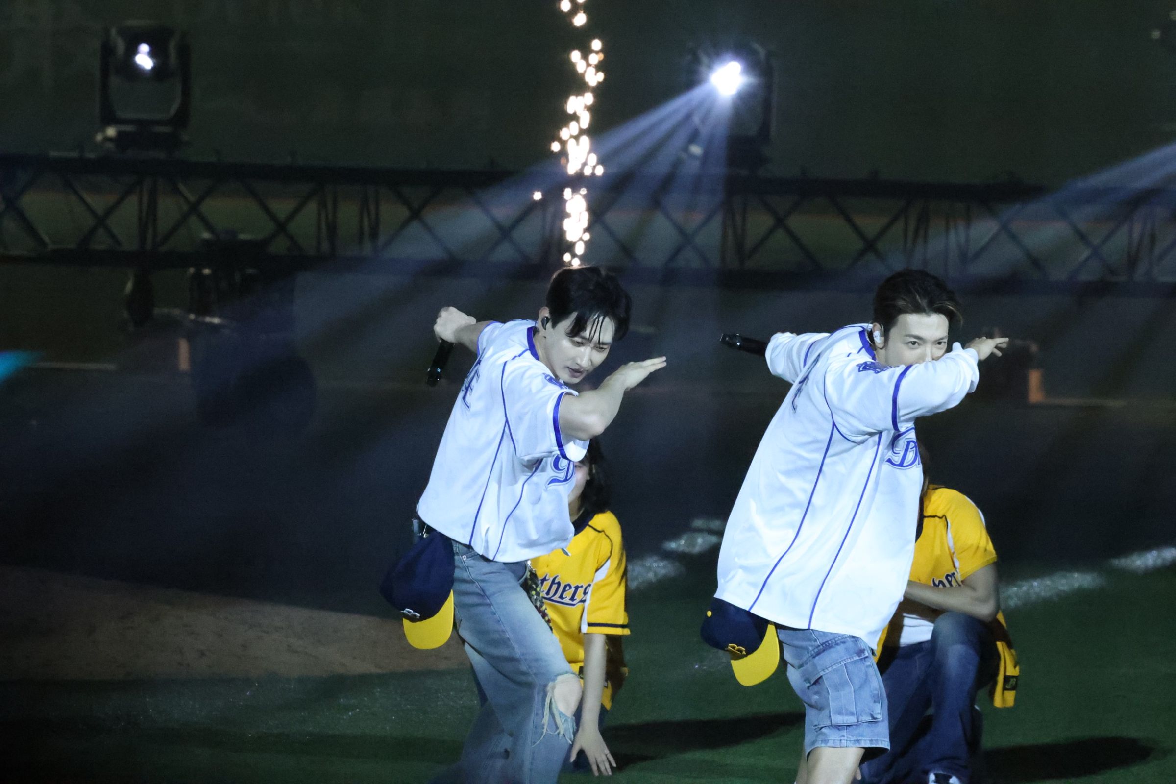 隨著賽後表演登場,象徵E.L.F.的「寶藍海」也像海浪般包覆整個球場,銀赫與東海一連飆唱七首經典歌曲,包括〈Go High〉、〈BAD〉、〈Danger〉、〈GGB〉、〈Bout You〉、〈Oppa , Oppa〉與〈Run Away〉,舞台魅力炸裂,此外,兩人表演到〈Oppa , Oppa〉時還驚喜、融合了中信兄弟應援舞, 引發現場粉絲、球迷尖叫聲連連。