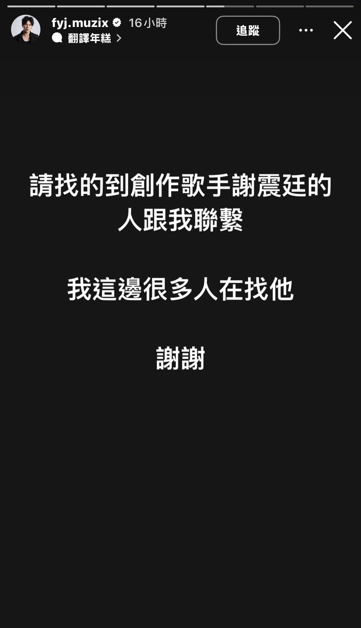 金曲新人謝震廷驚傳失聯!好友急發「尋人啟事」:很多人在找他
