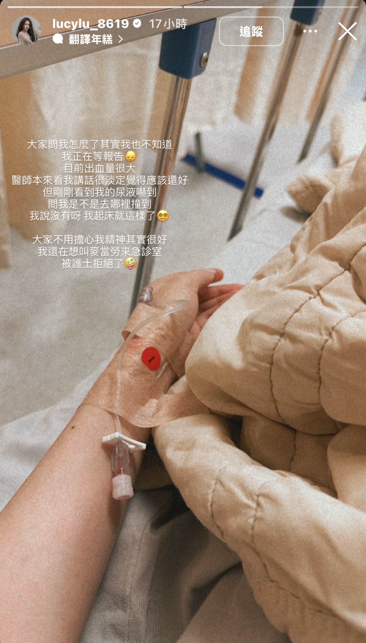 最後,Lucy也不忘安撫粉絲,強調自己精神狀態良好,「大家不用擔心,我精神其實很好,我還在想叫麥當勞來急診室,被護士拒絕了。」以輕鬆口吻化解粉絲的憂心。