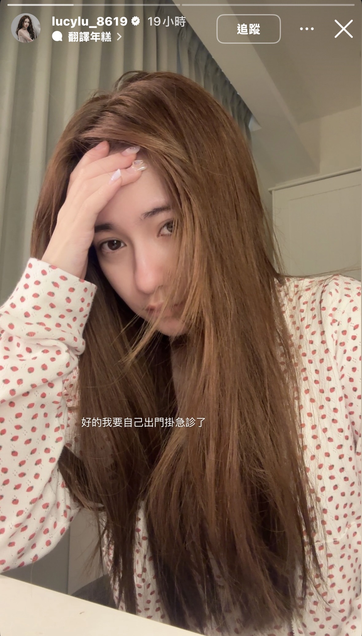 Lucy先曬出一張略顯憔悴的自拍,寫下:「好的我要自己出門掛急診了」,引發外界關注。隨後,她再度上傳一張手上存有留置針的照片,坦言:「大家問我怎麼了,其實我也不知道。」強調自己也在等待檢查報告出爐。