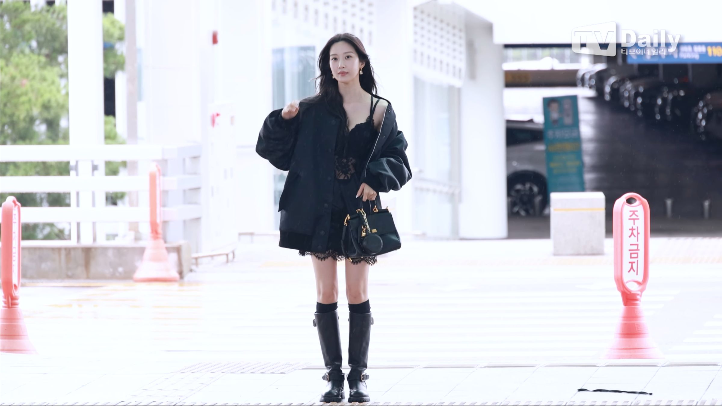 17日下午,文佳煐現身仁川機場,準備飛往印尼雅加達參加 Dolce & Gabbana BEAUTY 活動。身為品牌全球代言人的她,直接以黑色蕾絲睡裙(價值約220萬韓元,約台幣5.3萬)搭配Oversize外套亮相,性感與帥氣兼具,瞬間引爆現場閃光燈。
