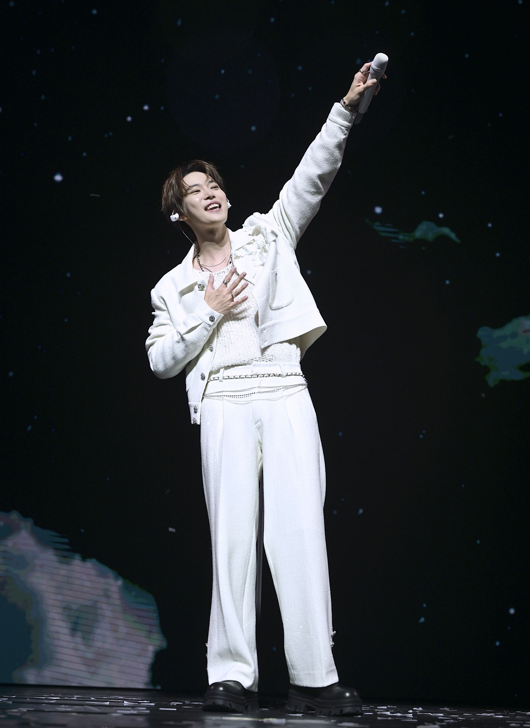 韓國人氣男團NCT成員道英20日、21日在台北流行音樂中心舉辦《2025 DOYOUNG CONCERT [Doors] TOUR》,單日吸引約4500名西珍妮NCTzen(粉絲名)到場。道英以〈Wake From The Dark〉揭開序幕,一身白色西裝搭配羽毛裝飾登場,氣場十足,還不時以中文「大聲一點」、「一起唱」與粉絲互動,除了自豪問現場「我是不是會很多?(中文)」,甚至還突然拿出香蕉在台上吃了起來,現場粉絲拿出手機把握機會狂拍這難得的鏡頭。