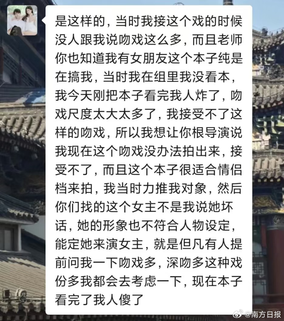 不過在罵聲不斷擴大後,胡凌宸今(1日)態度急轉,透過影片道歉,澄清自己並不是因為女友才離開劇組,而是「無法接受劇本大尺度吻戲」,和戀情沒有任何關係。