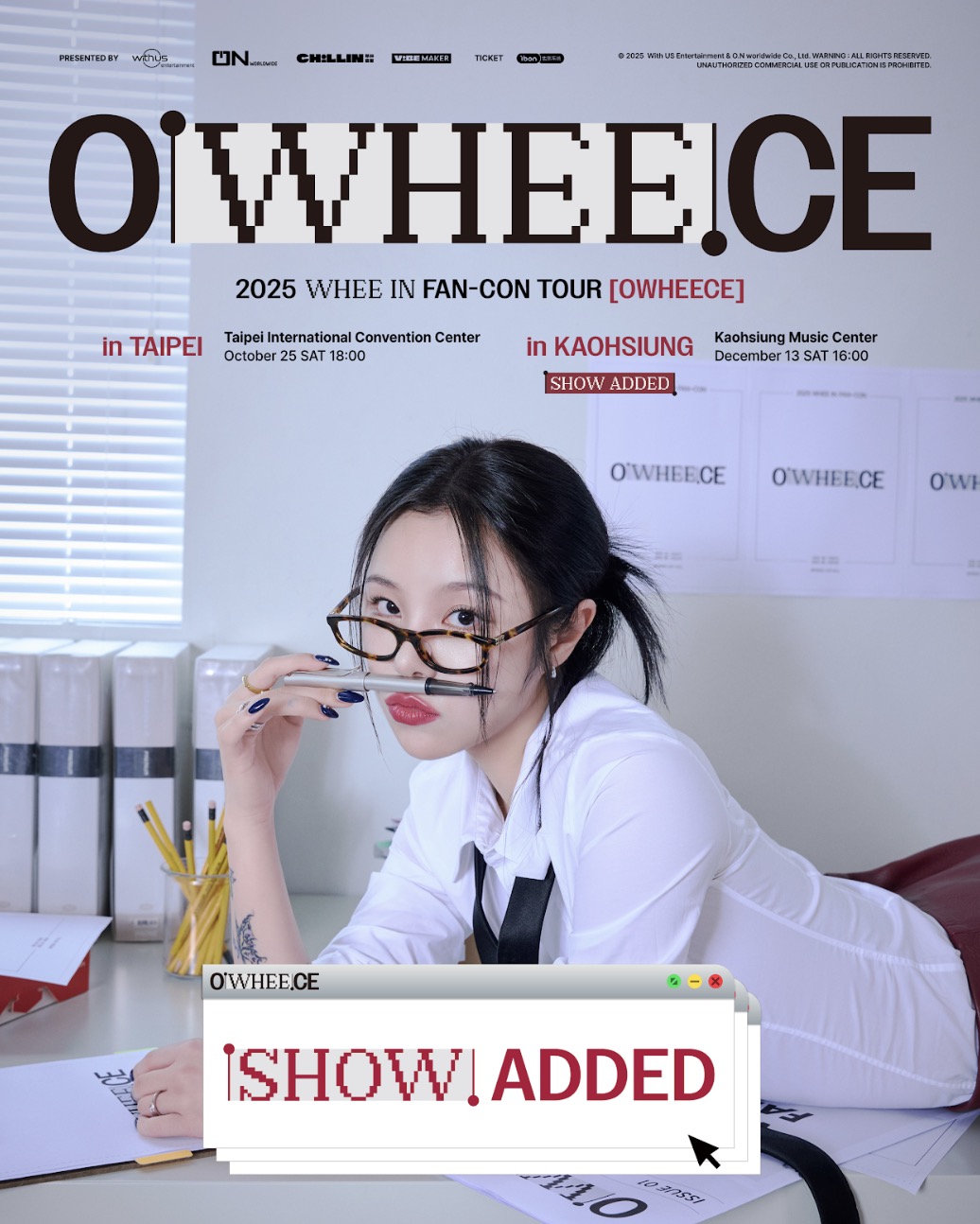 輝人甫於九月中在首爾圓滿完成《2025 Whee In FAN-CON TOUR [OWHEECE]》的首次演出,正式為本次巡迴揭開序幕。粉絲的應援與尖叫聲徹底炒熱現場氣氛,輝人不僅準備了包含多樣互動環節的脫口秀、粉絲熱烈敲碗的舞蹈組曲,更展現了以〈gogobebe〉、〈Egotistic〉、〈HIP〉、〈You’re the Best〉等MAMAMOO經典曲目串連而成的組曲表演,讓全場粉絲驚喜之餘也備受感動,兩場完美演出也讓粉絲留下難忘的夜晚。隨著巡迴正式開跑,海外首站臺北場與追加高雄場的消息也讓臺灣MOO MOO(官方粉絲名) 更加期待全新開始的輝人在不同城市綻放的舞台魅力。