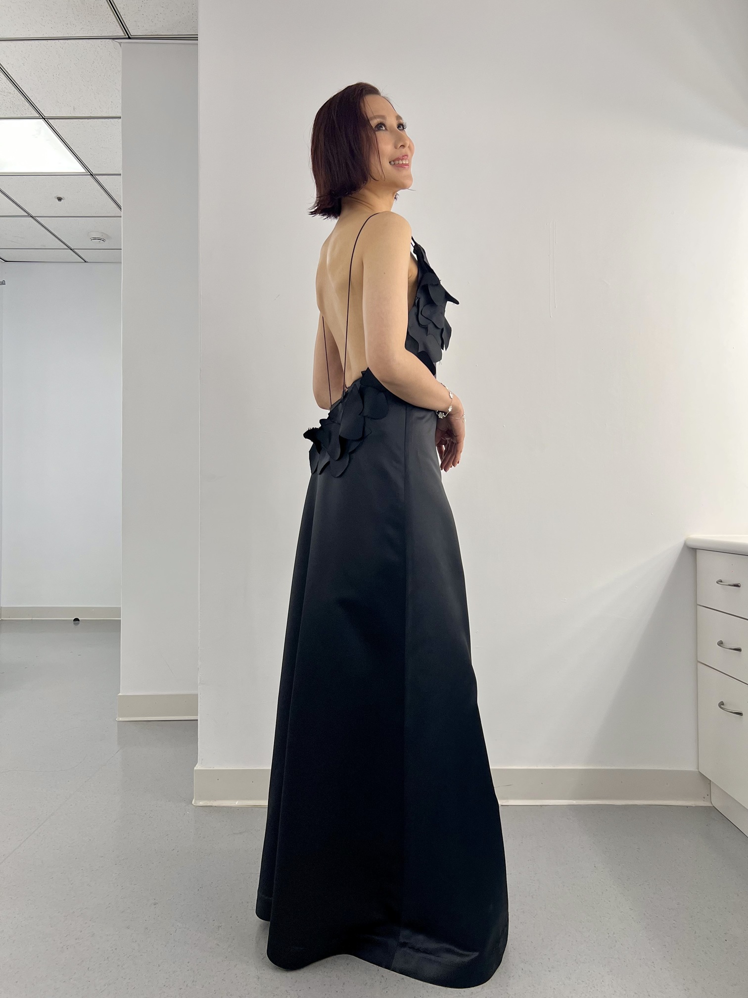 也因為嚴格自律,讓林凡成功瘦下三公斤,不僅身材線條凹凸有致,搭配名設計師APUJAN詹朴所操刀的一席「黑曜蝴蝶」禮服,首次大秀美背的林凡展現性感又優雅的氣勢,頓時成台上焦點!林凡透露一穿上這件剪裁絕佳、宛如「纜線般的細肩」設計的禮服就愛不釋手,更形容這件戰袍根本是「命定款」,「完美遮住不自信的地方,又展現背部線條」,為了駕馭這件「大露背戰袍」,她還特別進健身房針對背部肌肉加強訓練,如今成果令自己非常滿意,讓她開心直呼:「找到對的禮服,跟唱歌找到對的key一樣重要!」