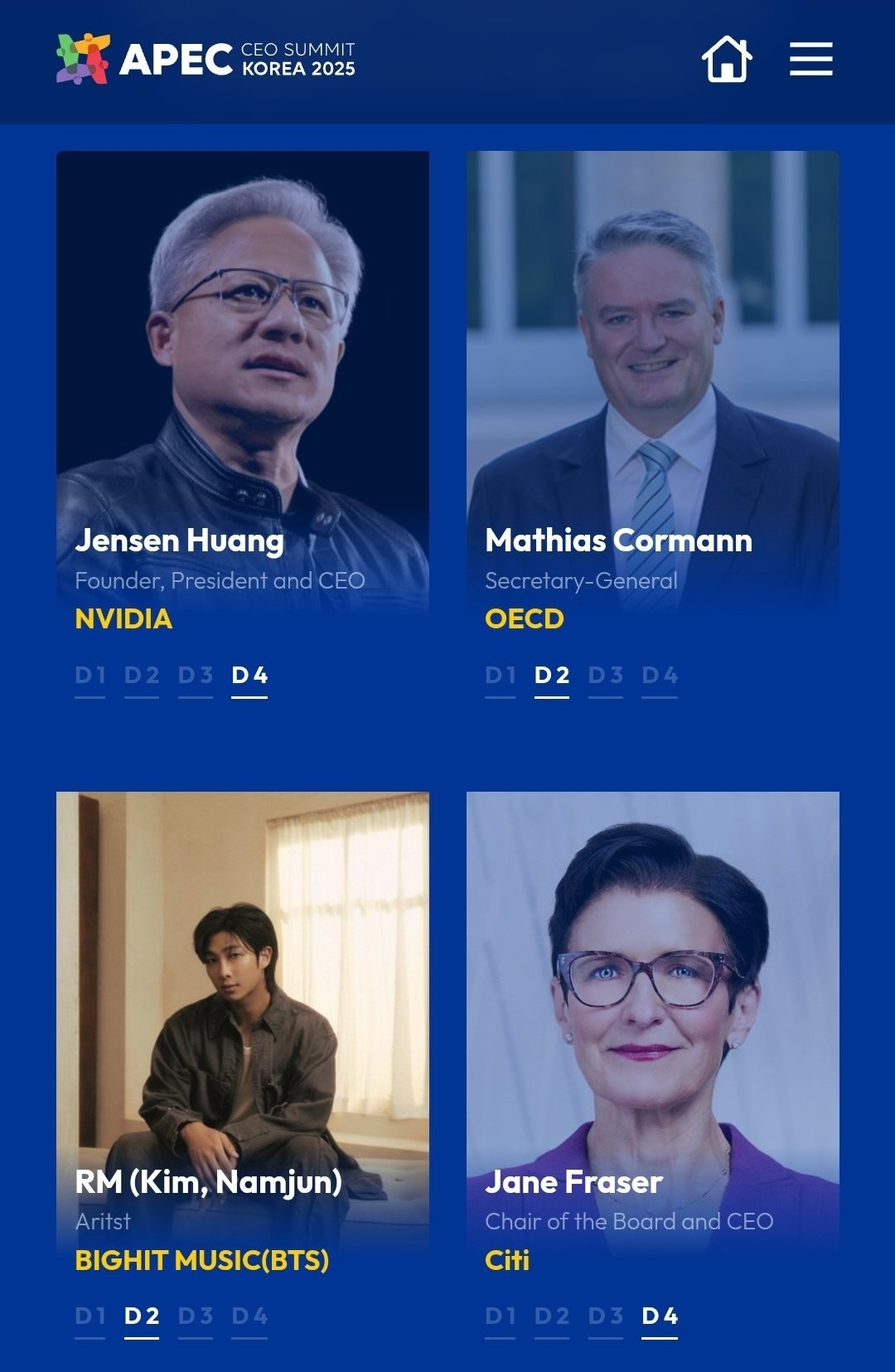 這次APEC企業領袖高峰會是官方重要活動之一,以「Bridge,Business,Beyond(橋接、商業、超越)」為主題,將於10月28日至31日在慶州藝術殿堂舉行。包括輝達執行長黃仁勳、亞馬遜AWS執行長 賈曼、Google亞太行銷長 卡恩、Meta與微軟高層等約 1700位國際領袖 都將出席,可說是商業與科技界的年度盛會。