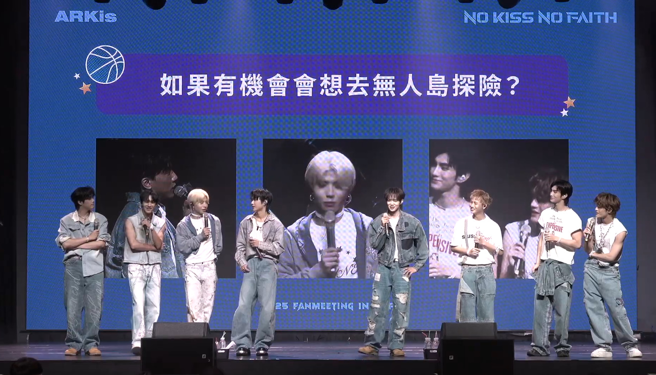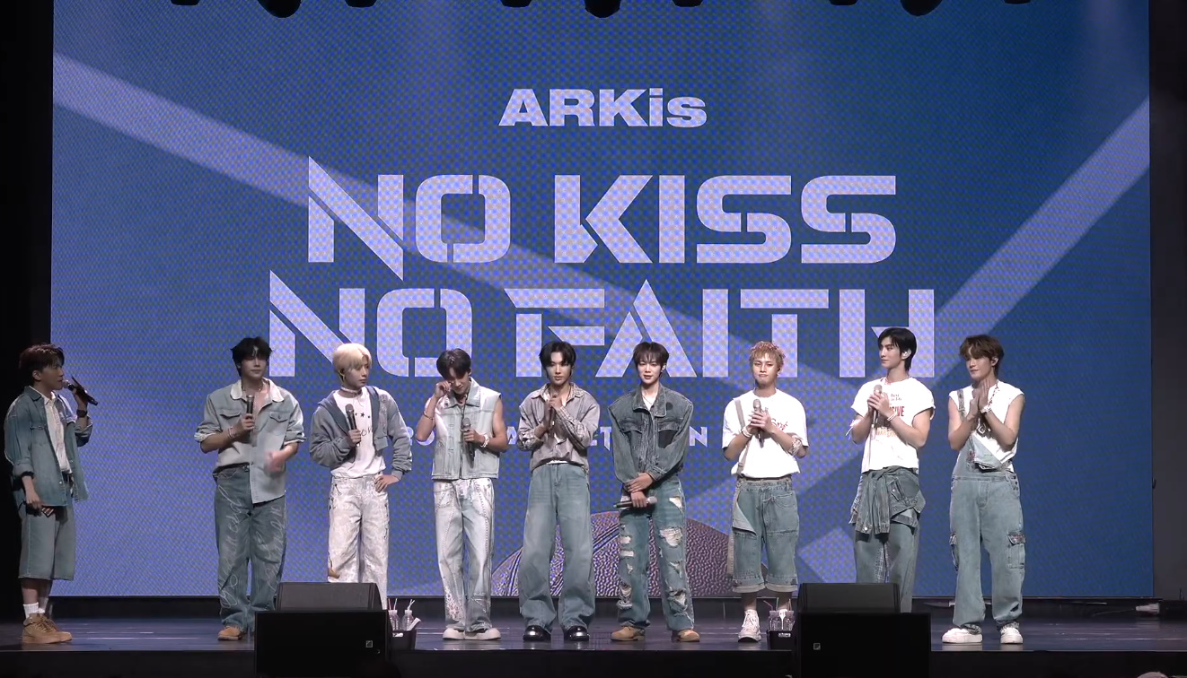 ARKis以見面會同名單曲〈NO KISS NO FAITH〉帥氣開場,首度曝光的舞蹈展更是讓KISS們尖叫不斷,出道即將滿週年,ARKis在一開場就感性了起來,感謝身旁工作夥伴和公司作他們最強的後盾,東翰講到一度哽咽,李定也坦言是因為看到東翰的努力才有了當練習生的決心,Vin則提到工作以來鮮少回台中老家,最近一次回家找到國中寫給媽媽的卡片,說要讓她當星媽,開心喊:「媽,我做到了!」而曾赴韓國當練習生的Alex,等了十年終於如願站上屬於自己的舞台直呼感動。