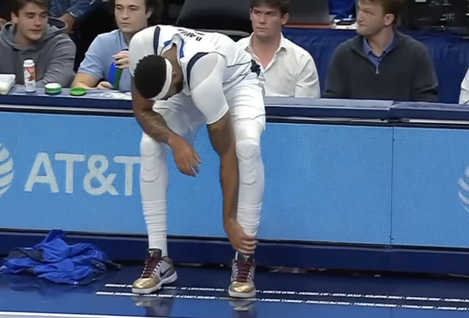 NBA/AD 再度因傷倒下!他攙扶左腳後腳跟表情痛苦退場 獨行俠又傷了一名禁區球員