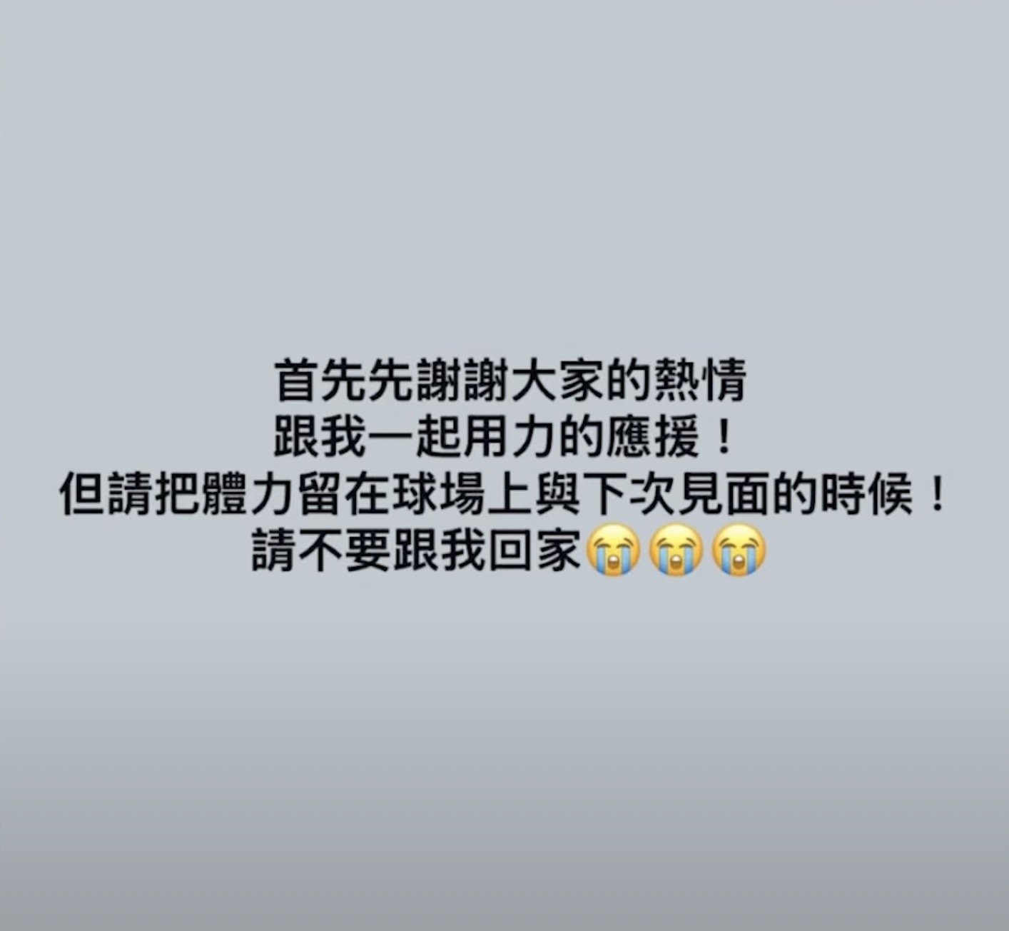 然而風光加入新團隊沒多久,珮含卻突然在 IG 限時動態發出求助文:「請把體力留在球場上跟下次見面的時候!請不要跟我回家!」字裡行間透露出害怕與不安。貼文曝光後立刻引起熱議,有網友直呼太誇張:「這真的已經越界了!」、「球員應援不是私生活干擾!」但也有少數人誤解意思,引發一陣爭辯。