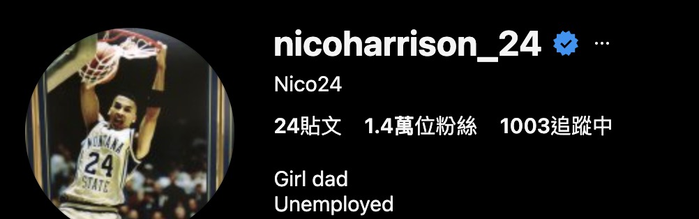 Nico Harrison 也在自己的IG自我介紹改為:「Girl dad Unemployed(女兒的爸爸,失業中。)」