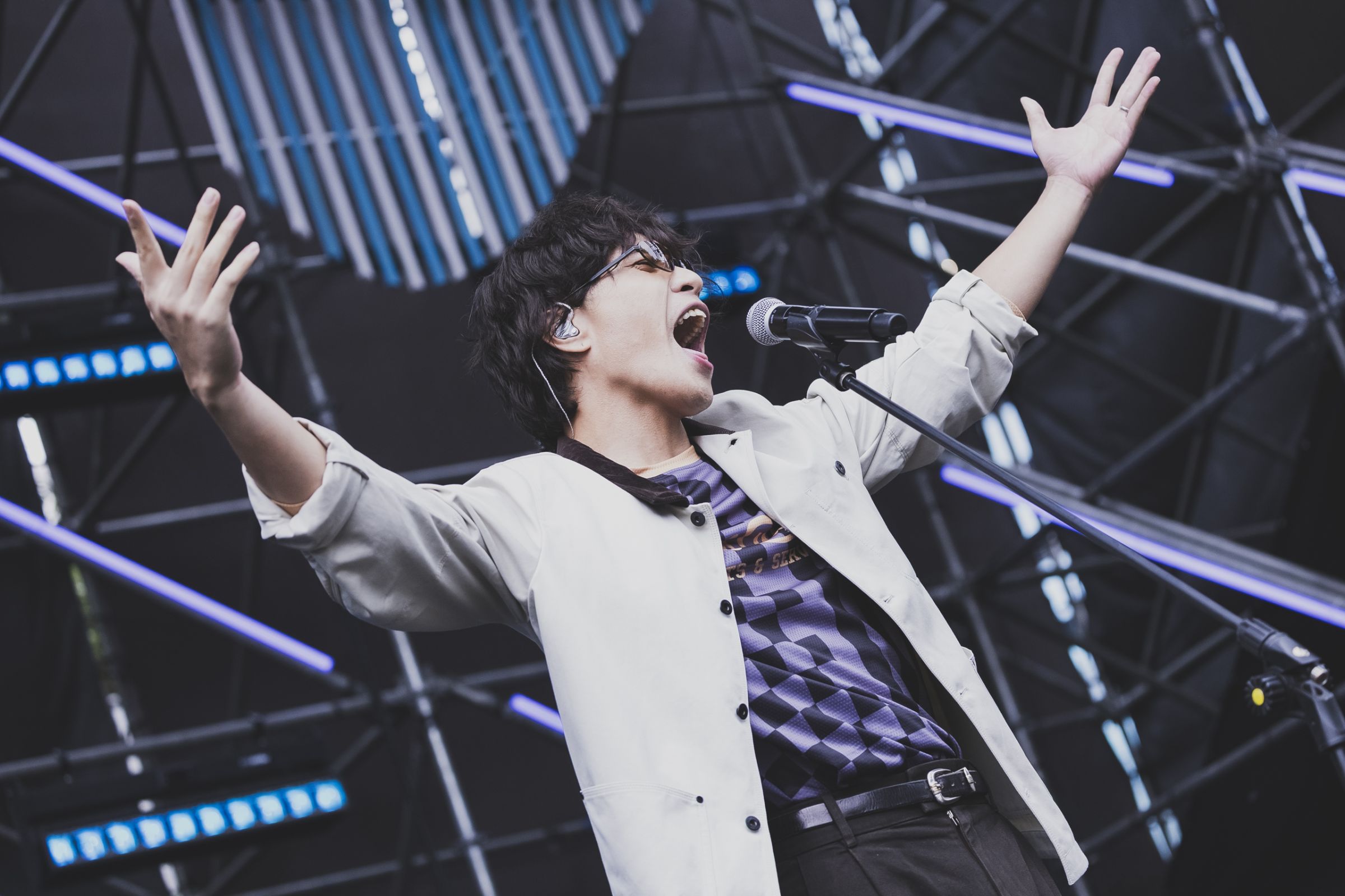 夜幕降臨後,華山大草原亮起燈光,楊乃文以〈Song 2〉炸裂開場,隨即問候樂迷們:「大家好,很開心回到簡單生活節,Simple Life 非常不簡單,大家玩得開心嗎?我剛剛跳得很累,一開始大家的 woo hoo 有沒有跟著唱?」緊接著〈A dream of Bonnie and Clyde〉瞬間引爆全場,強勢展現女爵搖滾魅力。