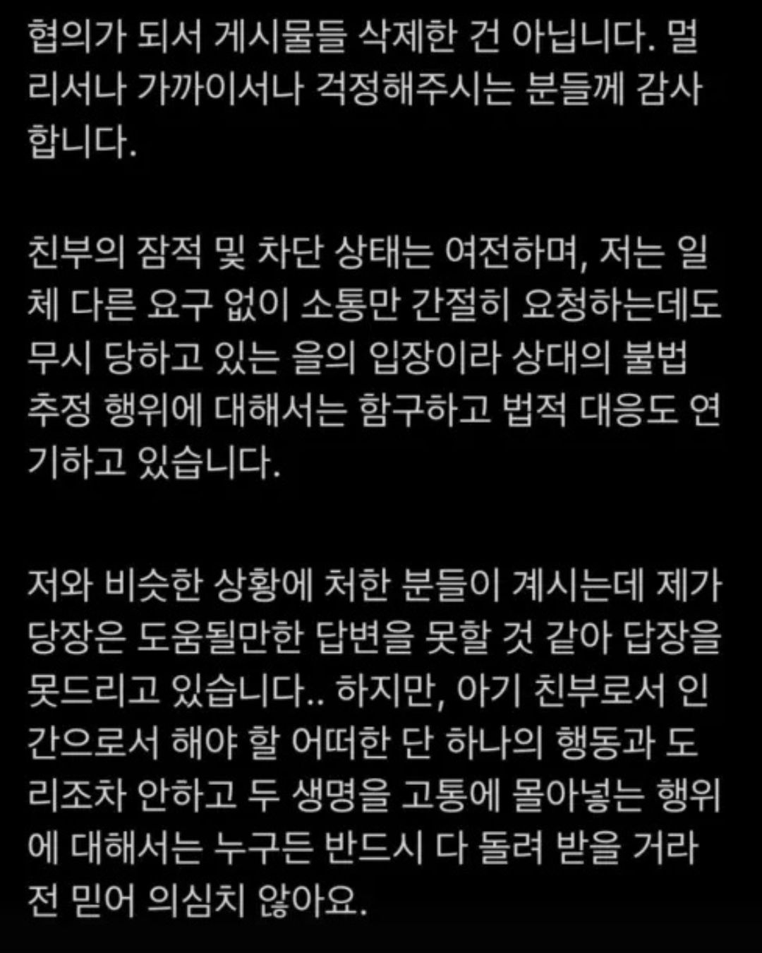 南韓戀愛實境節目《Heart Signal 3》前出演者 徐敏在(現改名 徐恩祐)今年 5 月公開懷孕消息,並指控前男友、孩子生父 A 某失聯,引發外界關注。雙方目前透過法律程序溝通中,而她於 30 日在 IG 罕見刪除過去針對男方的多篇指控文,卻在最新貼文中仍表達強烈不滿,痛斥前男友逃避責任。