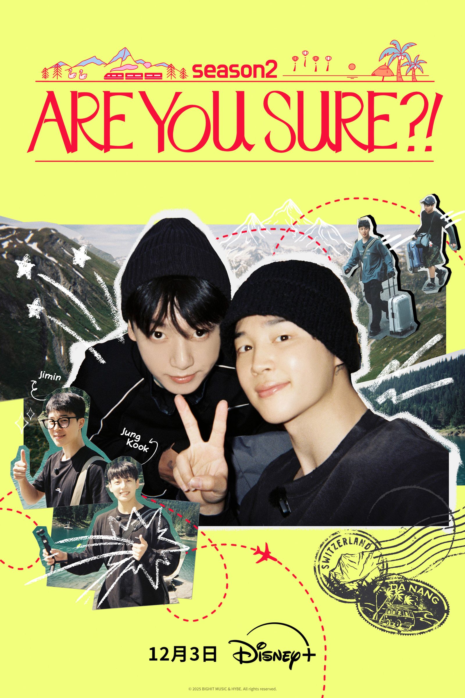 超人氣偶像團體BTS防彈少年團大受好評的旅遊實境秀《ARE YOU SURE?!》第二季熱鬧回歸,再度找來「忙內LINE」的Jimin、Jung Kook在當兵退伍後踏上瘋狂旅程,讓粉絲一探兩大偶像私底下可愛、調皮的面貌。首波預告在BTS防彈少年團官方YouTube頻道上架10天即突破122萬次點閱,第一集開場更讓Jung Kook與工作人員直接突襲Jimin的住家,讓上半身赤裸的Jimin睡眼惺忪苦笑「真的要這樣拍嗎?我先穿衣服吧」。