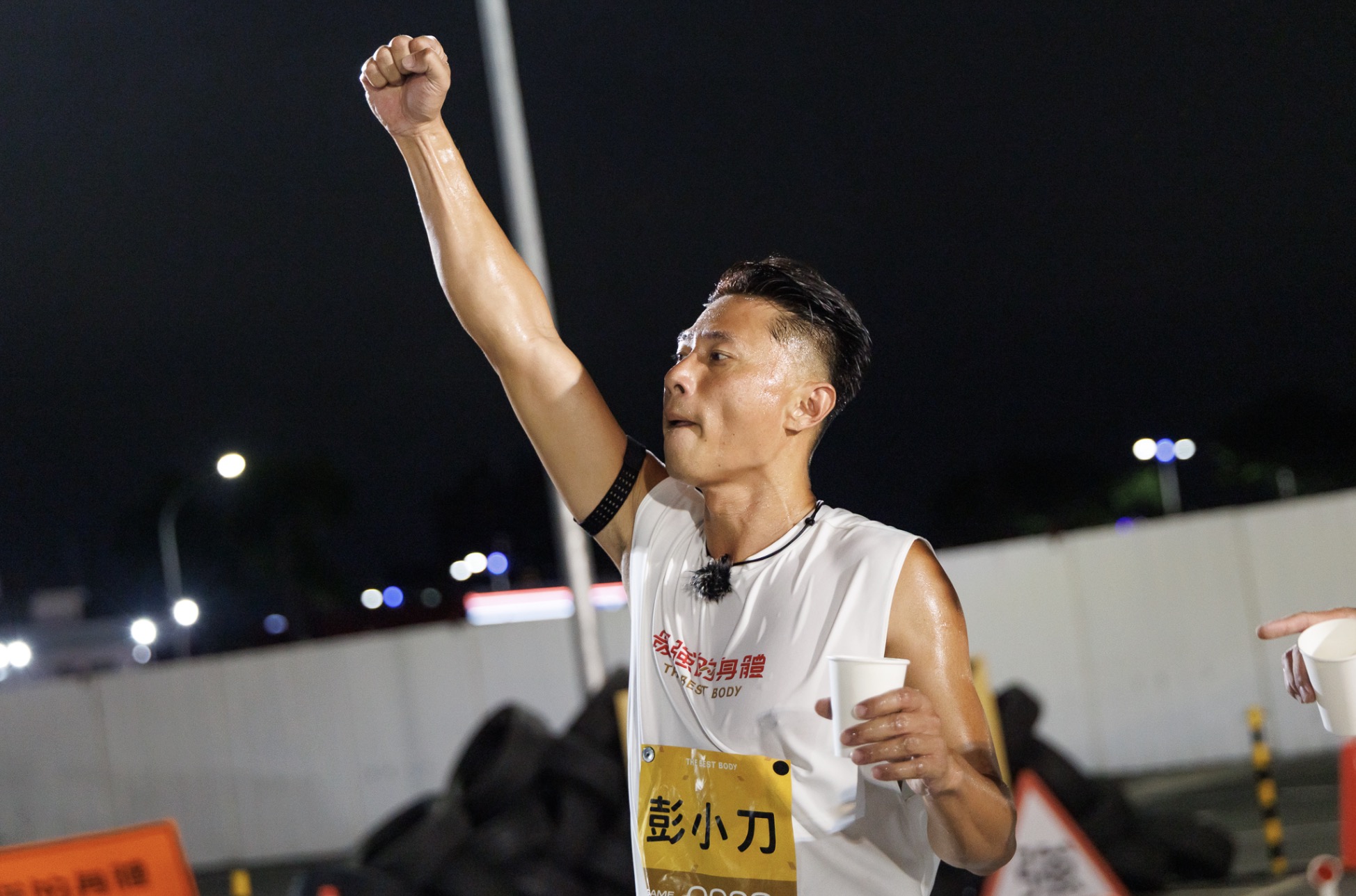 彭小刀此次也與潘君侖搭檔挑戰男雙,他坦言原本想借重潘君侖的超強體能,沒想到第一次訓練就被逼到喊吃不消,甚至笑說若製作單位不降重量,「56就會亡」。雖然嘴上抱怨,但兩人最終靠著高頻率訓練,在比賽當天展現超水準演出,還打破一項大會紀錄,讓主播驚呼連連。