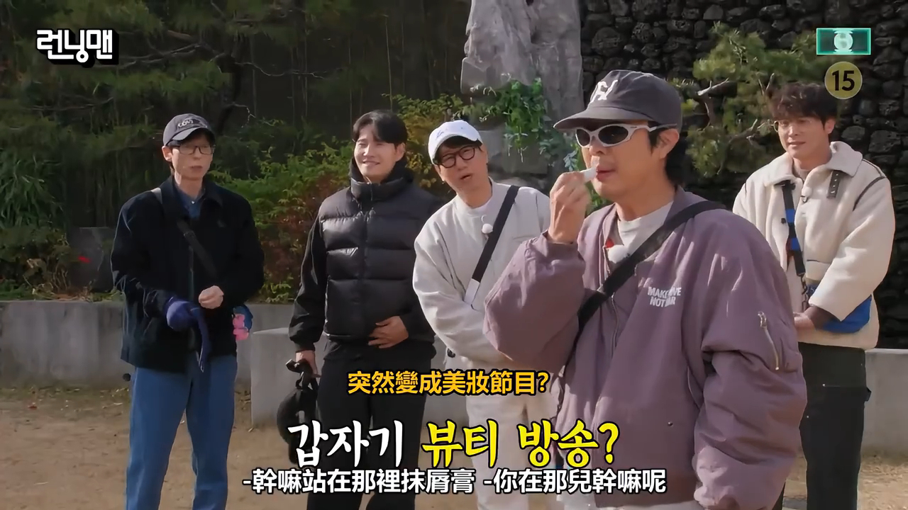 節目一開場,成員們正準備拍攝時,Haha 突然拿出護唇膏塗抹,引來眾人一臉問號,還被調侃「是在做置入嗎?」Haha 隨即解釋,這其實是製作人 馨仁 送給大家的禮物。劉在錫也藉此正式向觀眾說明,馨仁製作人因即將生產,這是她最後一次參加《Running Man》錄製,為長達 5 年的合作畫下句點。
