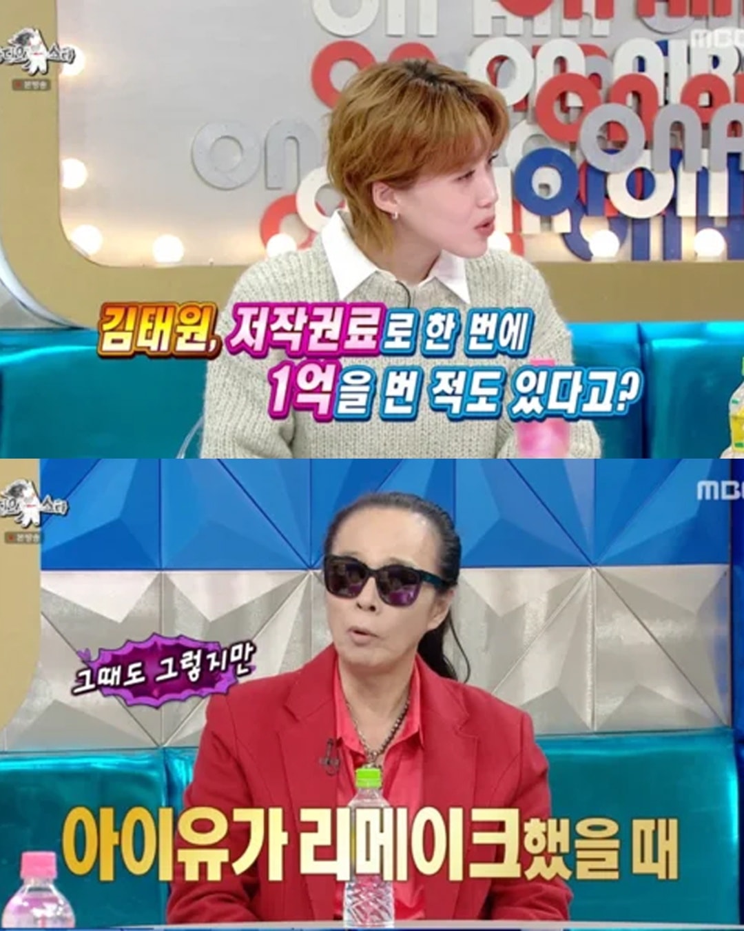 節目後段,金泰元更罕見公開自己的著作權收入他透露:「我曾經有一個季度,光是版稅就拿到 1 億韓元。」並補充說明,「2002 年〈Never Ending Story〉最紅的時候有過一次,而這次 IU 翻唱後,又再度出現單季破億的結算。」不過,即使談到驚人的收入數字,金泰元仍展現音樂人的本色,語氣一轉感性表示:「比起錢,更重要的是老歌能被重新唱起來,本身就是一種榮耀。」一席話也讓現場氣氛變得溫暖不少。