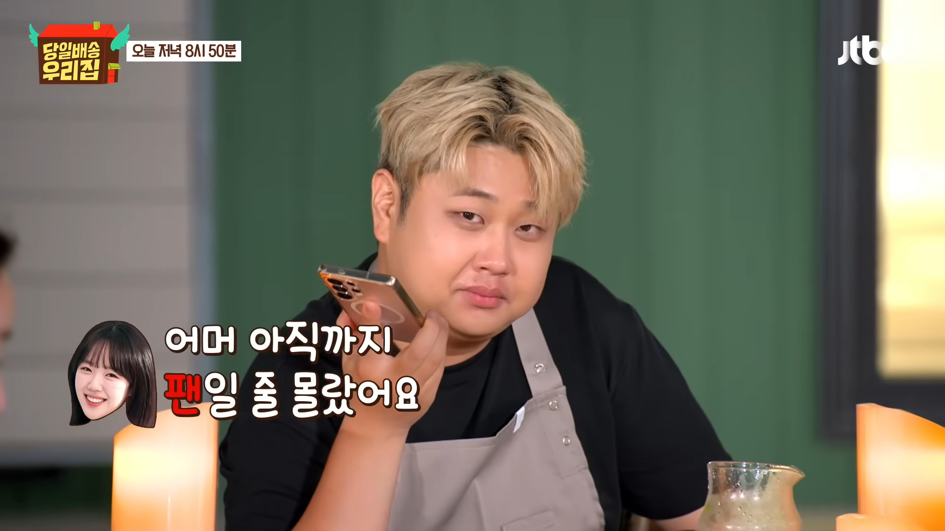 而近日尹男老真追星成功,在JTBC 話題綜藝《當日配送 我家》6 日釋出預告中,直接以「(♥池睿恩)真・理想型登場,尹男老主廚淚崩?」為標題,瞬間掀起熱議。節目中,尹男老親手準備一桌豐盛料理,讓成員們吃的超開心,就在此時,張英蘭忍不住吐槽:「什麼都會,酒也會做,就是不會交女朋友。」一旁的 Gabee 立刻神助攻,提議直接打電話給池睿恩,並爆料自己與對方私交甚篤,讓現場瞬間沸騰。