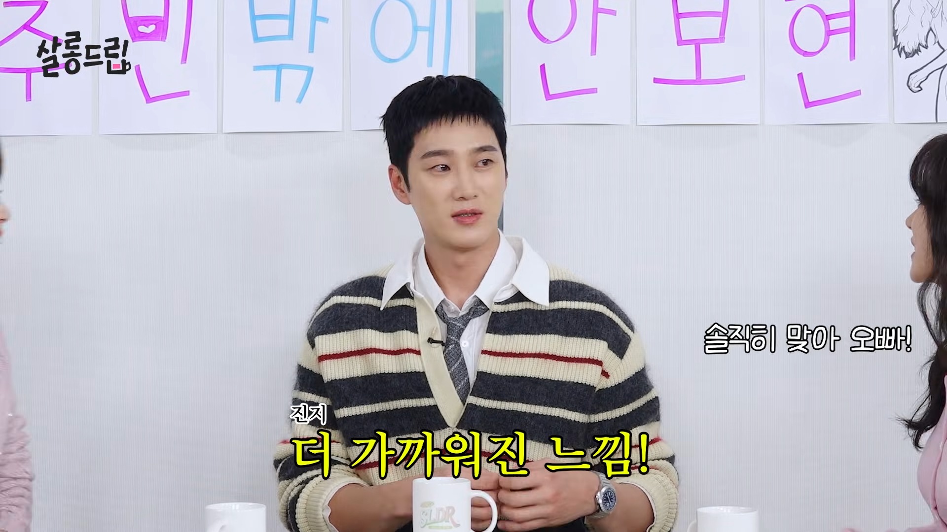 李主儐在節目中透露,兩人因拍攝《春日狂熱》長達 6、7 個月,幾乎有九成時間都在浦項取景,「一起吃苦、一起熬夜,真的有種戰友情的感覺」,感情自然變得相當親近。安普賢也笑說,畢竟是浪漫喜劇,戲中親密橋段不少,「拍著拍著,彼此真的變得更熟了」。話才說完,李主儐立刻害羞附和:「我本來也想這樣講,但剛剛還在猶豫要不要說出口。」