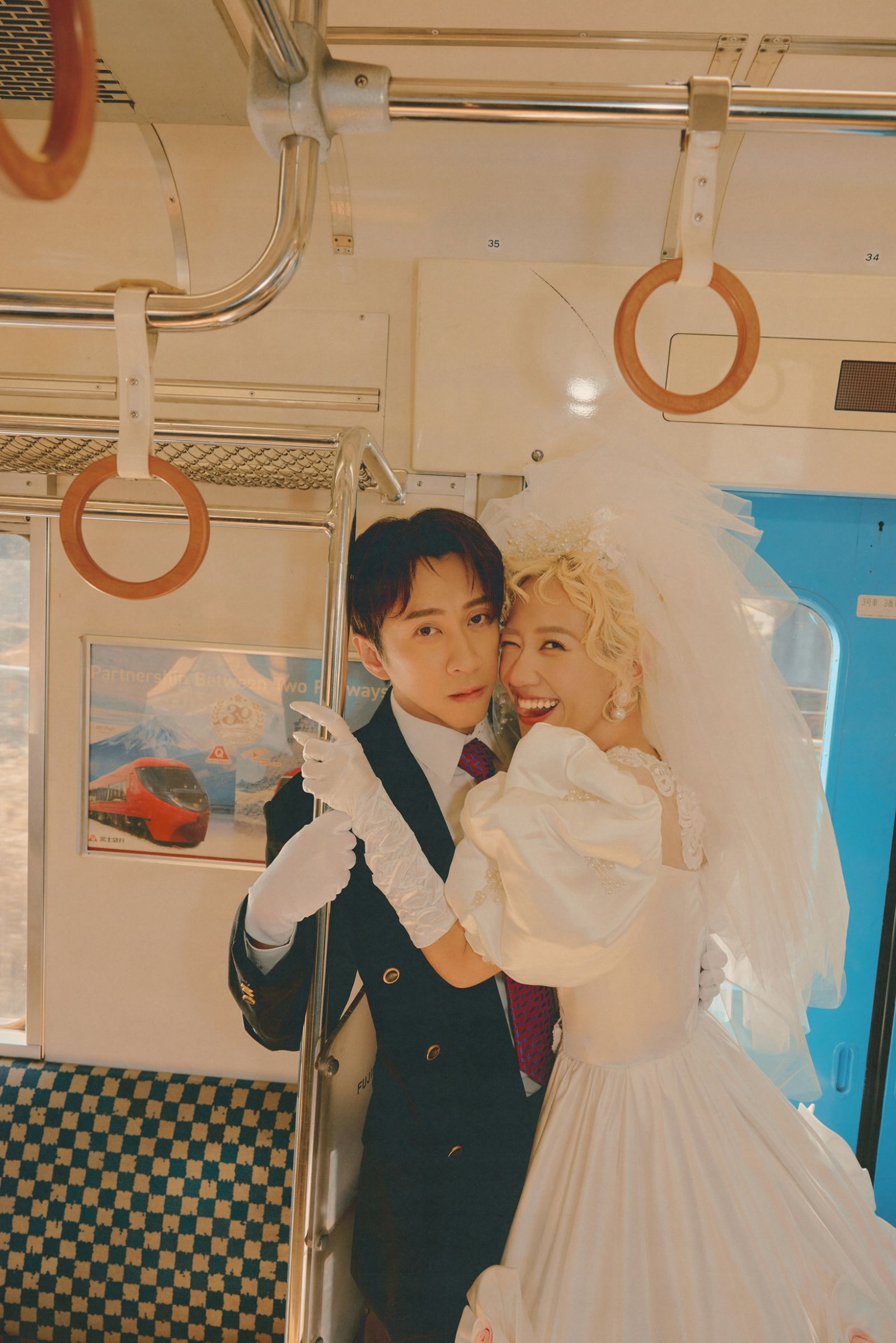繼先前富士山系列的唯美婚紗照驚豔四座,陳漢典、LULU竟又登日本電車拍浪漫婚紗,讓解鎖婚紗成就再升級!為了完整呈現昭和年代的復古氛圍,這套松田聖子風婚紗更特地拉隊前往日本車站拍攝,原本擔心電車拍攝申請困難的LULU透露歷經多次申請,直到最後一刻才成功獲准進入車廂取景,可說完全展現新人好運奇蹟!更巧的是,拍攝當天上車的車站名竟叫做「壽」,而且是無人車站,當地更流傳許多人會特地購買「壽」站車票作為結婚紀念,讓 LULU 忍不住直呼:「真的太有意義跟紀念價值了,完全是命中注定的巧合。」