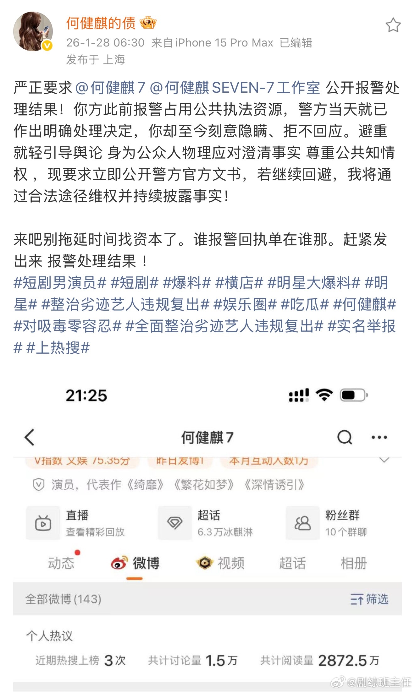 值得注意的是,何健麒過去也曾因私生活爭議短暫影響工作。去年 3 月,他捲入感情風波後,一度遭平台封殺,錯失出演古裝劇《玉茗茶骨》的機會。沉寂一段時間後,他靠短劇作品累積聲量再度受到關注,如今卻再次面臨新的爭議,演藝之路再添變數。粉絲對此紛紛聲援偶像,留言寫道:「何健麒清者自清!!」、「相信他不會做無底線的事」、「該告就告,孩子值得被保護」、「身正不怕影子斜」,展現強烈護航態度,也讓這場風波在社群上持續引發討論。