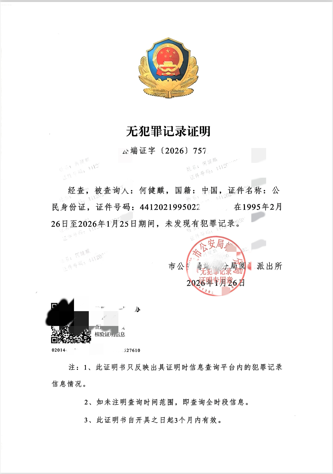 對此,何健麒工作室第一時間發出聲明,公開「無犯罪記錄證明」打臉爆料,證明自 1995 年至 2026 年 1 月 25 日期間,未曾有任何犯罪紀錄,並強調所有指控屬惡意揣測,藝人對法律與社會高度負責,會持續接受監督,同時專注演藝事業,以更多作品回饋社會。