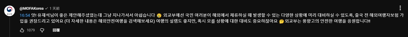 除了笑點與溫情,《風向GO 2》還意外掀起一波「官方認證名場面」。節目出發前,劉在錫曾冷靜提議大家應該先買旅遊保險,池錫辰也附和「每個人都該買一份」,但在一陣吵鬧後,這個建議就這樣被放生。沒想到節目播出後,韓國外交部竟親自在留言區現身,直言「很可惜錯過了一個重要建議」,順勢提醒民眾出國前務必做好準備,尤其是提前投保海外旅遊保險,以應付各種突發狀況。