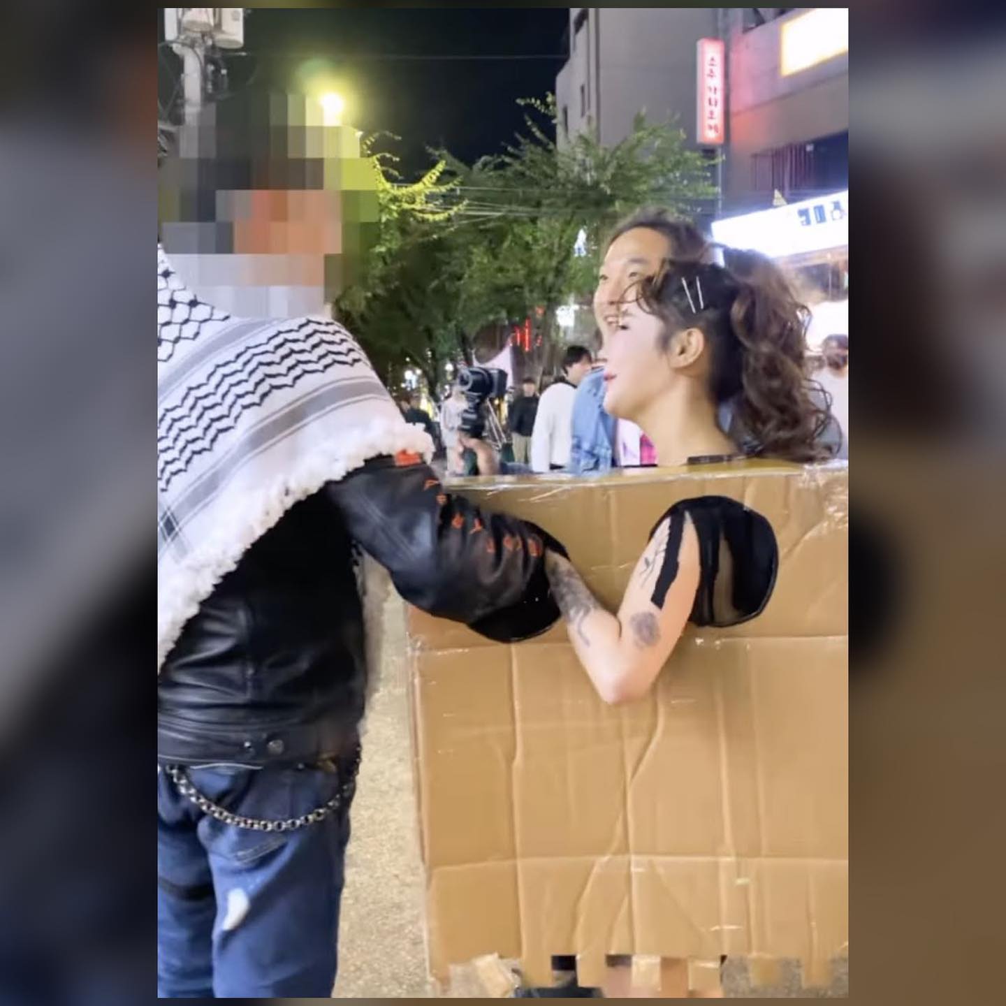 根據韓媒《中央日報》與《朝鮮日報》報導,年僅20多歲的Ain曾以成人影片女優及模特兒身份在社群平台累積高曝光度,她經營的 X 帳號曾分享多支男女交媾影片,行徑大膽、尺度驚人。2023年10月,她更在首爾江南區與弘大商圈等鬧區上街,全裸套上紙箱「Angel Box(天使箱)」,並招攬路人觸摸胸部,將過程影片上傳至 YouTube 平台,目的是吸引流量與提高知名度。