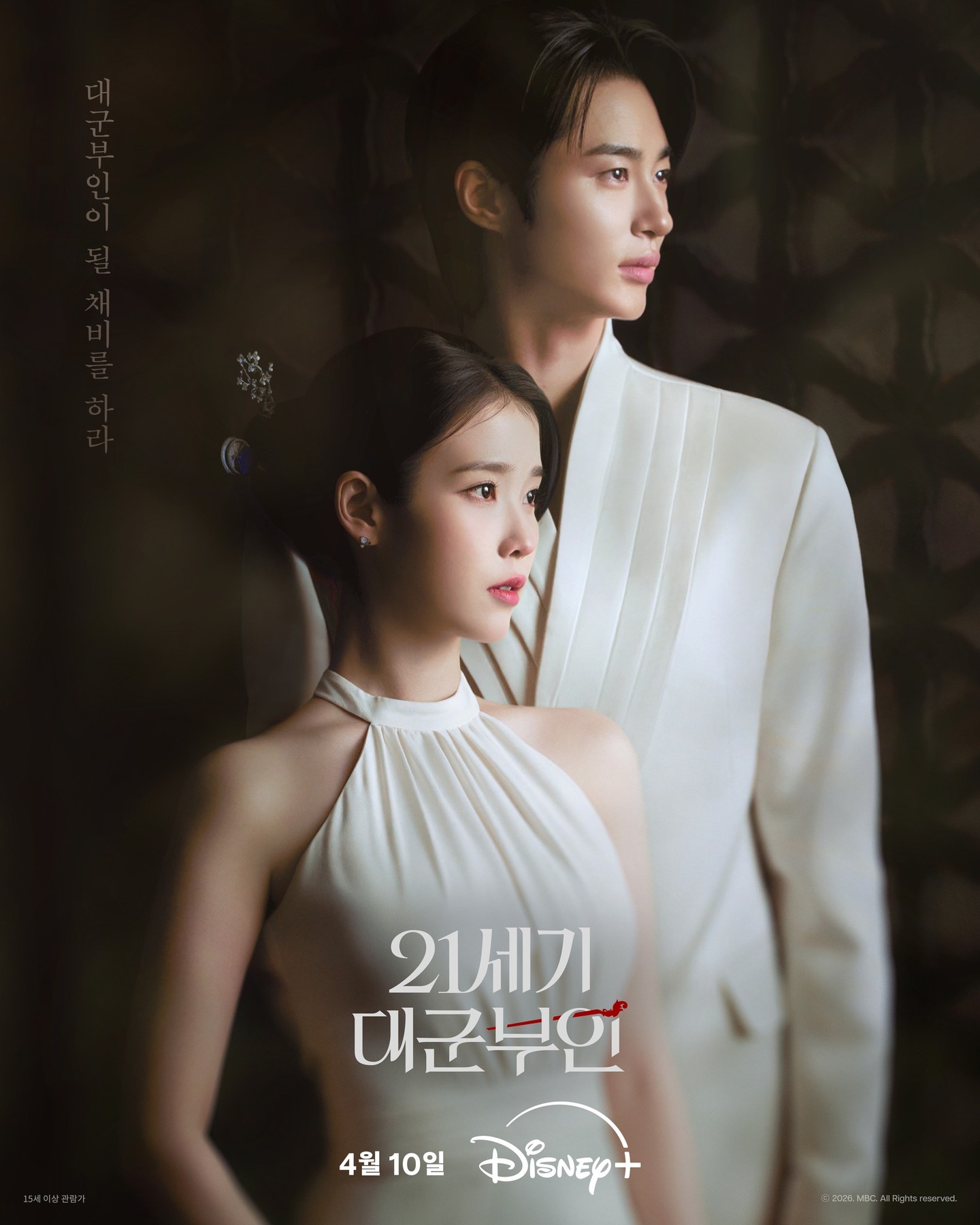由 MBC 打造的《21世紀大君夫人》,日前宣布將於4月10日正式首播。近日,劇組日前搶先公開全新情侶海報,IU與邊佑錫身穿融合韓國傳統美感的華麗情侶服裝,搭配精緻配件與高貴氣質,宛如王室婚紗照般華麗,引發網友直呼「太班配了」,只見兩人堅定凝視遠方的眼神,彷彿在宣告他們將攜手改寫命運,成為彼此生命中最重要的伴侶。