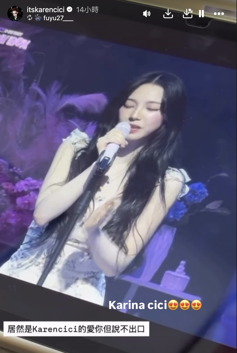 Karina 近年人氣持續飆升,作為 aespa 門面擔當,不只舞台魅力強大,私下自然不做作的個性更圈粉無數。這次生日派對,她以溫柔日常風造型登場,整體氛圍宛如與粉絲的甜蜜約會,再加上挑戰中文歌曲,更讓不少粉絲驚呼誠意滿滿。〈愛你但說不出口〉原唱為美籍華裔歌手 karencici,歌曲本身就帶有細膩曖昧情感,透過 Karina 詮釋,更增添一層戀愛濾鏡。