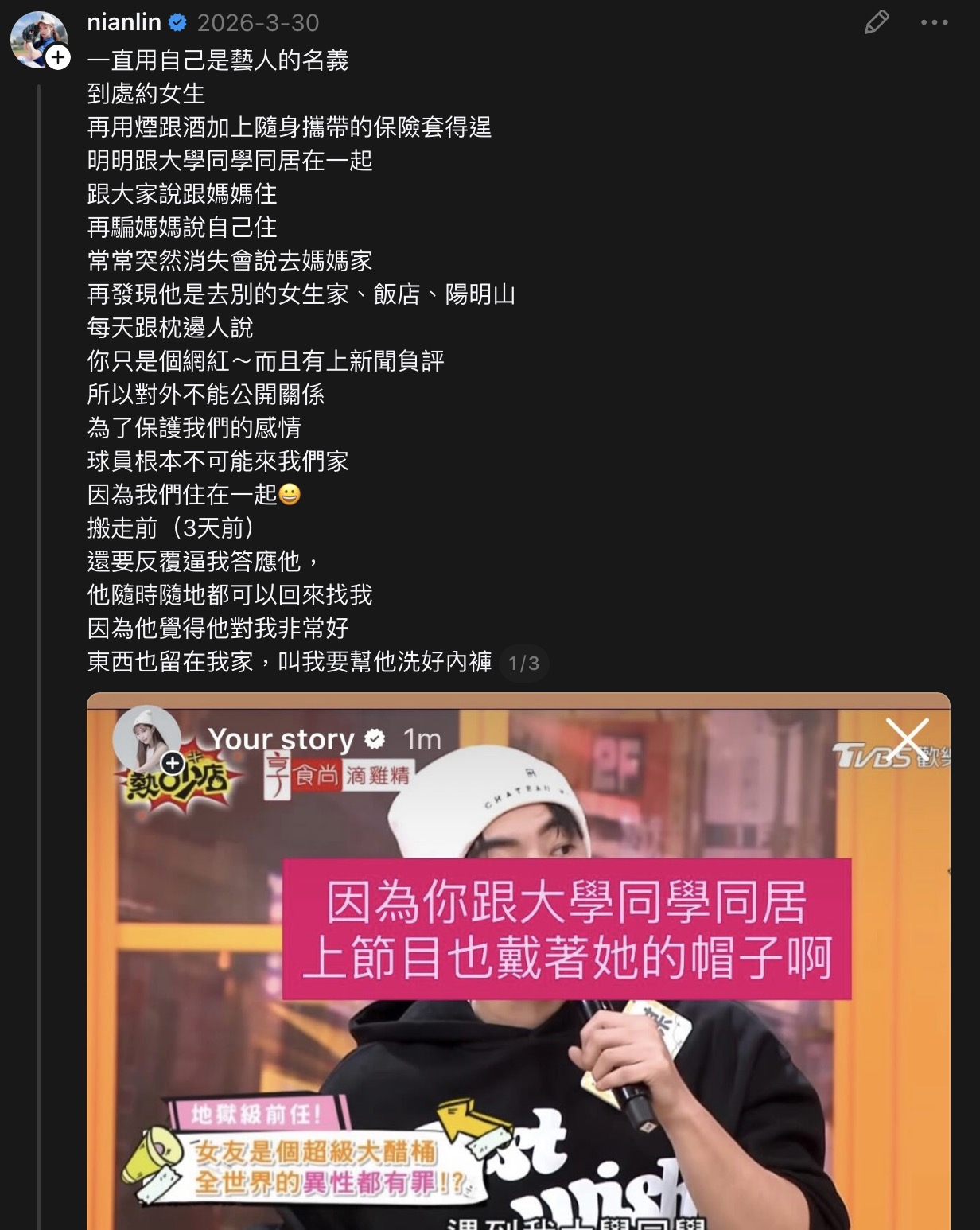 林倪安透露,兩人其實是認識超過20年的大學同學,直到去年8月才正式交往,卻在今年3月底畫下句點。她坦言,過去早已耳聞對方感情狀況複雜,但當時並未放在心上,直到親身經歷才徹底看清。她表示,交往期間對方不僅關係不願公開,還被指多次出現欺瞞行為,讓她身心俱疲,最終選擇將一切攤在陽光下。