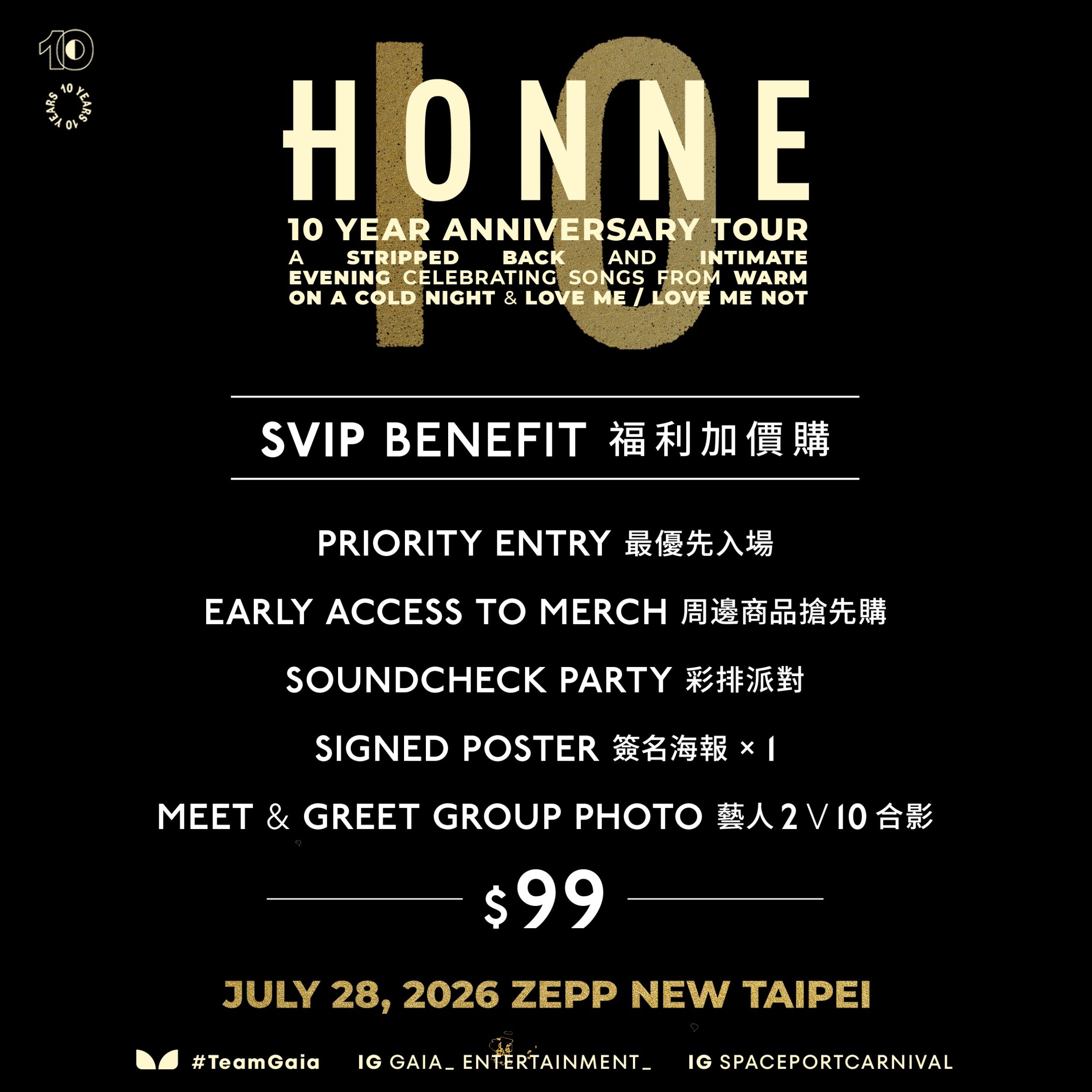 * 特別福利: 僅限 SVIP/VIP 票券持有者可加購 $99 TWD 福利券,並獲得 10 週年紀念黑膠預購資格與專屬簽名。