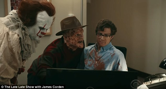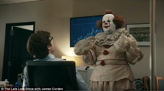▼柯登在自己的節目中搞笑演出《It》的幽默短劇,當一名員工想要叫 IT 部門的人來幫他修電腦,沒想到出現了這個 IT!