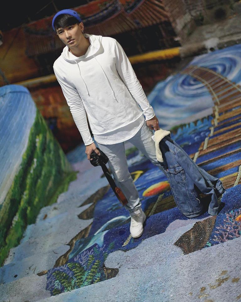 近幾年越來越流行將相同色系的單品重複疊加,形成一種同色系的層次效果,非常適合由夏轉秋的微涼時節。例如下面這套,以長版白 Tee 搭配白色連帽素 Tee ,下半身搭配淺色單寧直筒褲,配上白襪和漁夫帽,潮流度就大增!