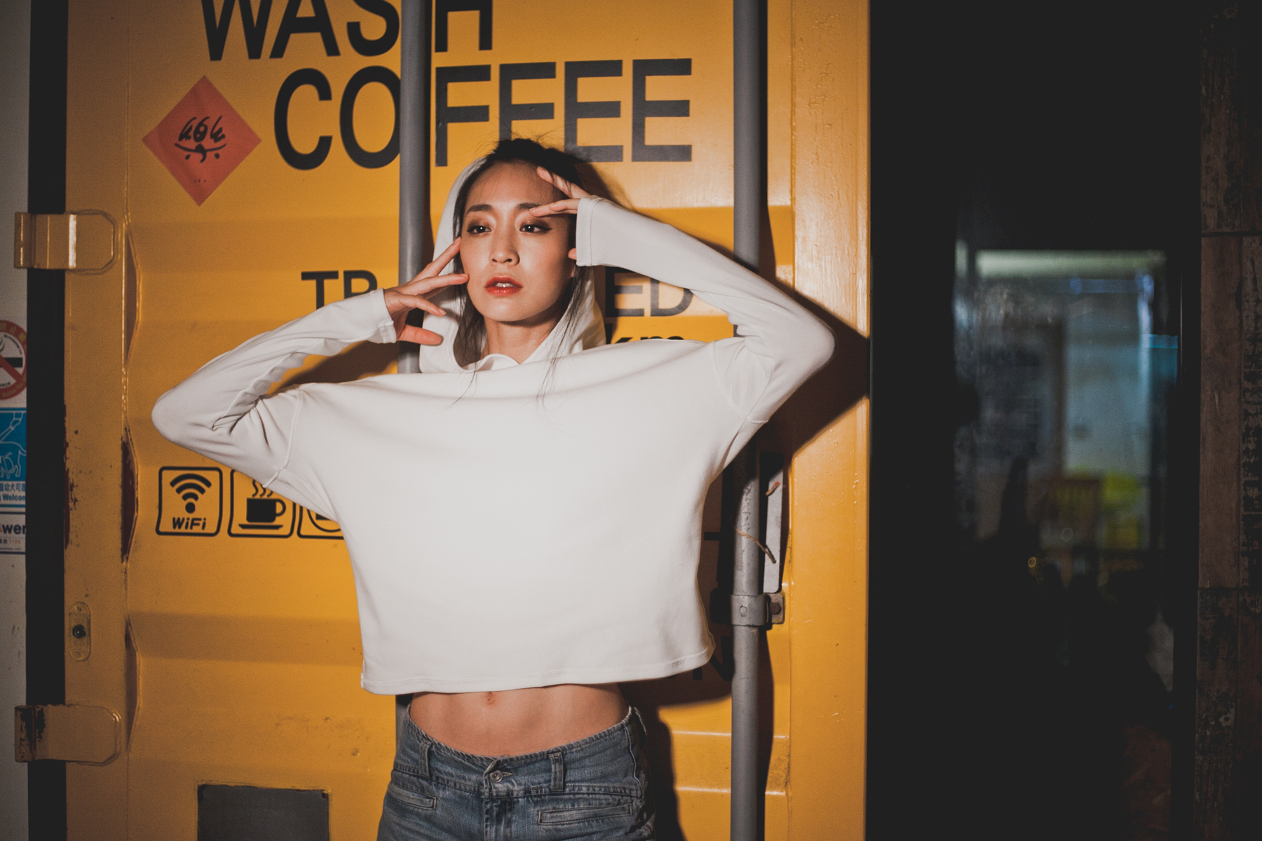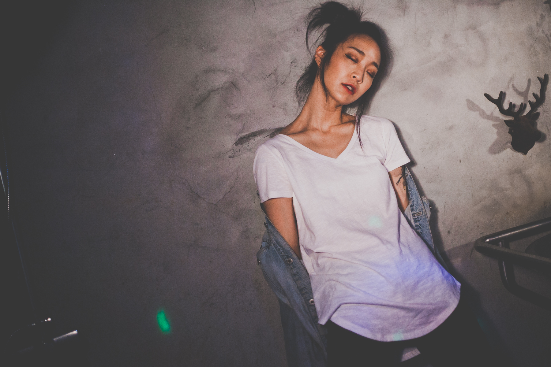 除了男生的連帽白 Tee 穿搭,C.L.A.P 當然也能找到適合女孩的連帽白 Tee 款式。下圖這件短版連帽白 Tee 讓身材比例更完美,搭配單寧長褲就很好看。