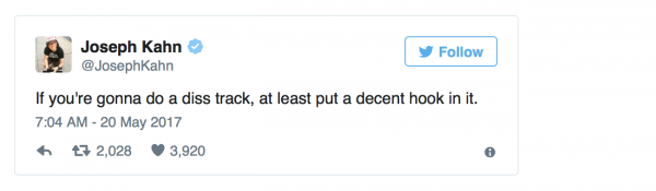 ▼同時 Joseph Kahn 也是站在第一線的泰勒絲護衛隊,在今年 5 月凱蒂佩芮釋出《Swish Swish》歌曲時,他就跟著 Ruby Rose 一起公然開嗆:「如果你要做一首 diss 歌曲,好歹要做得像樣一點。」