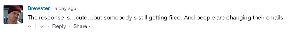 相信雖然郵件被公開,對一向注重隱私的名人來說都會感到憤怒不自在,但艾瑪史東以非常靈敏的回應,替福斯影業解決了問題,不過也有網友開玩笑的表示:「艾瑪史東的回應超可愛,但有人即將要被 Fire了!」這次的事件又再次讓大家看見艾瑪史東真的是人美、EQ 也超高!