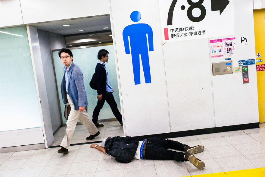 英國攝影師拍下日本早晨「街道醉漢」 千奇百怪姿勢超乎想像!