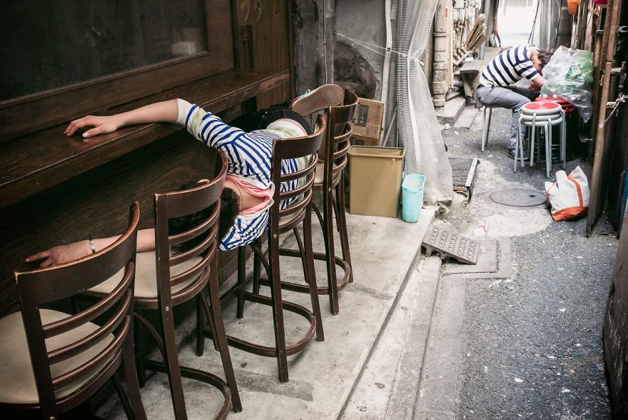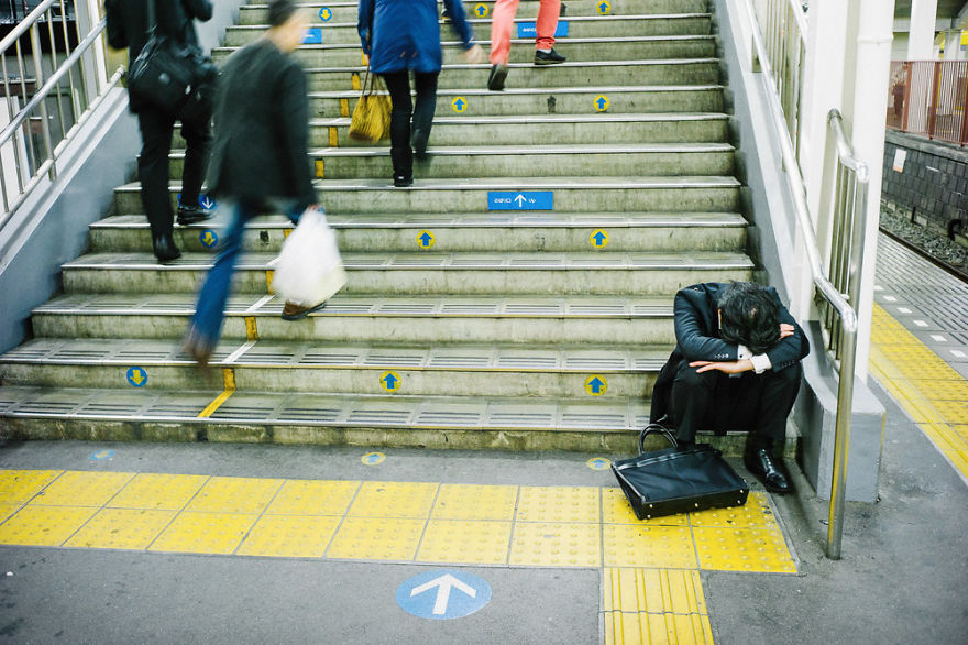 日本社會的飲酒文化在全世界都相當知名,除了上班族在離開公司之後都不免會去小酌一番之外,相信大家在看日本綜藝節目時,也時常聽到男、女藝人表示他們喜歡喝酒,「喜歡小酌」甚至似乎成為了日本明星親民化、個性化的象徵之一。不過在真實的日本早晨中,你卻可以看見許多人則是小酌過頭了,在日本的街道上時常會出現躺在路邊呼呼大睡的酒醉男女,這讓來自英國曼徹斯特的攝影師 Lee Chapman 感到相當驚奇。