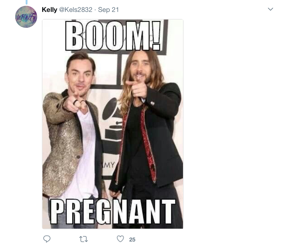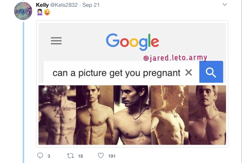 ▼在傑瑞德雷托將半裸照上傳沒多久後,立刻引起了粉絲們的尖叫以及瘋傳,甚至許多網友立刻 P 圖,製作出「如何讓一張照片使你懷孕」,並將傑瑞德雷托的半裸照合在一起。