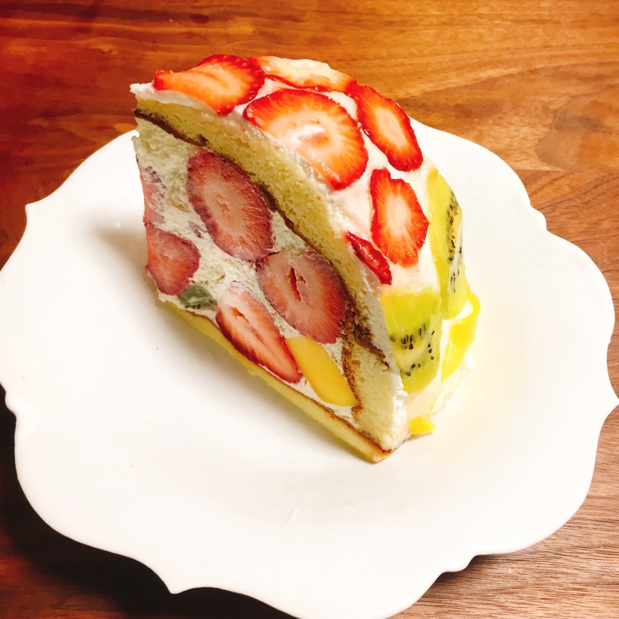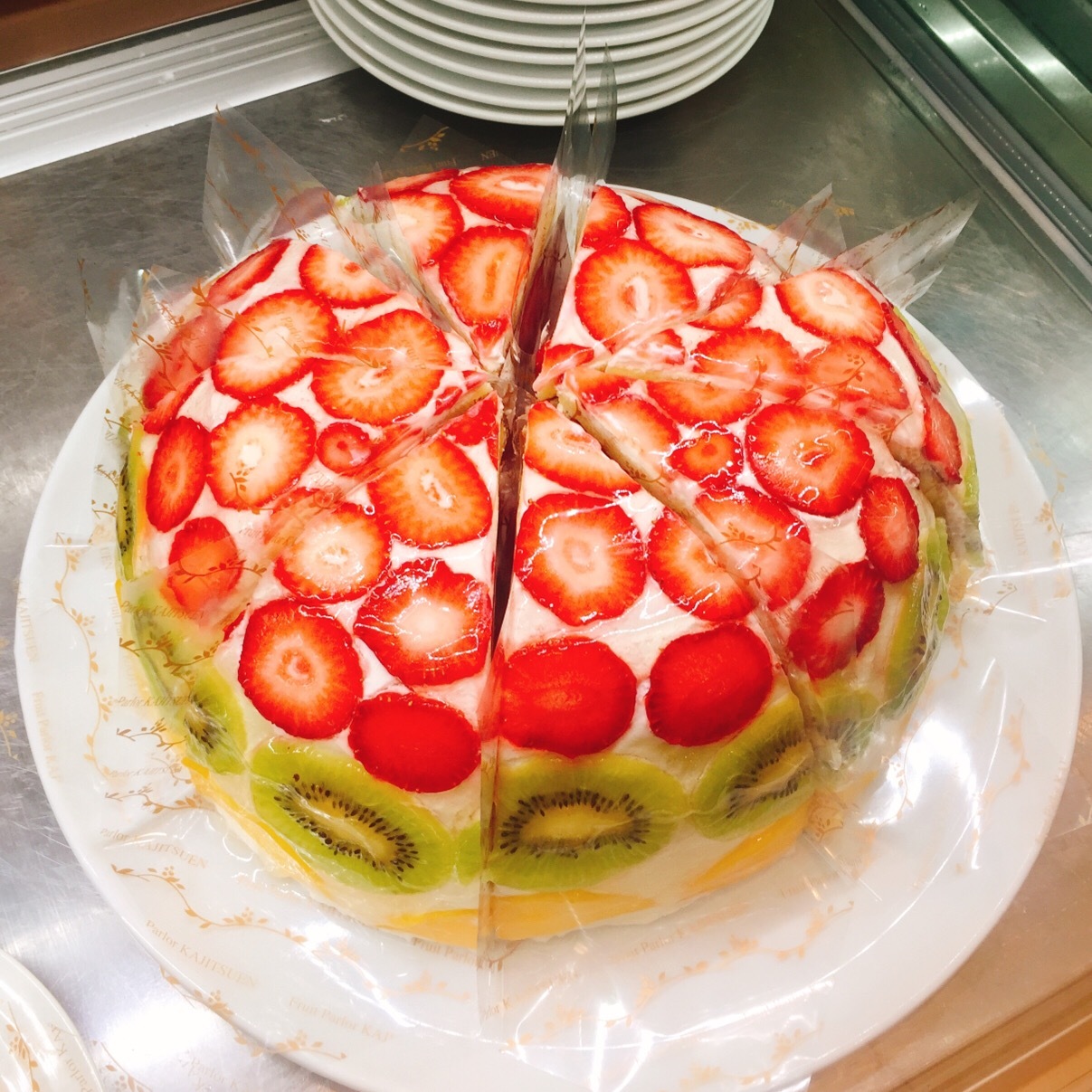 ▼草莓和奇異果蛋糕的橫切面,讓你每一口都能夠嘗到新鮮水果,同時在果實園店內也有額外販售著高級水果,滿足了水果控的各種需求。
