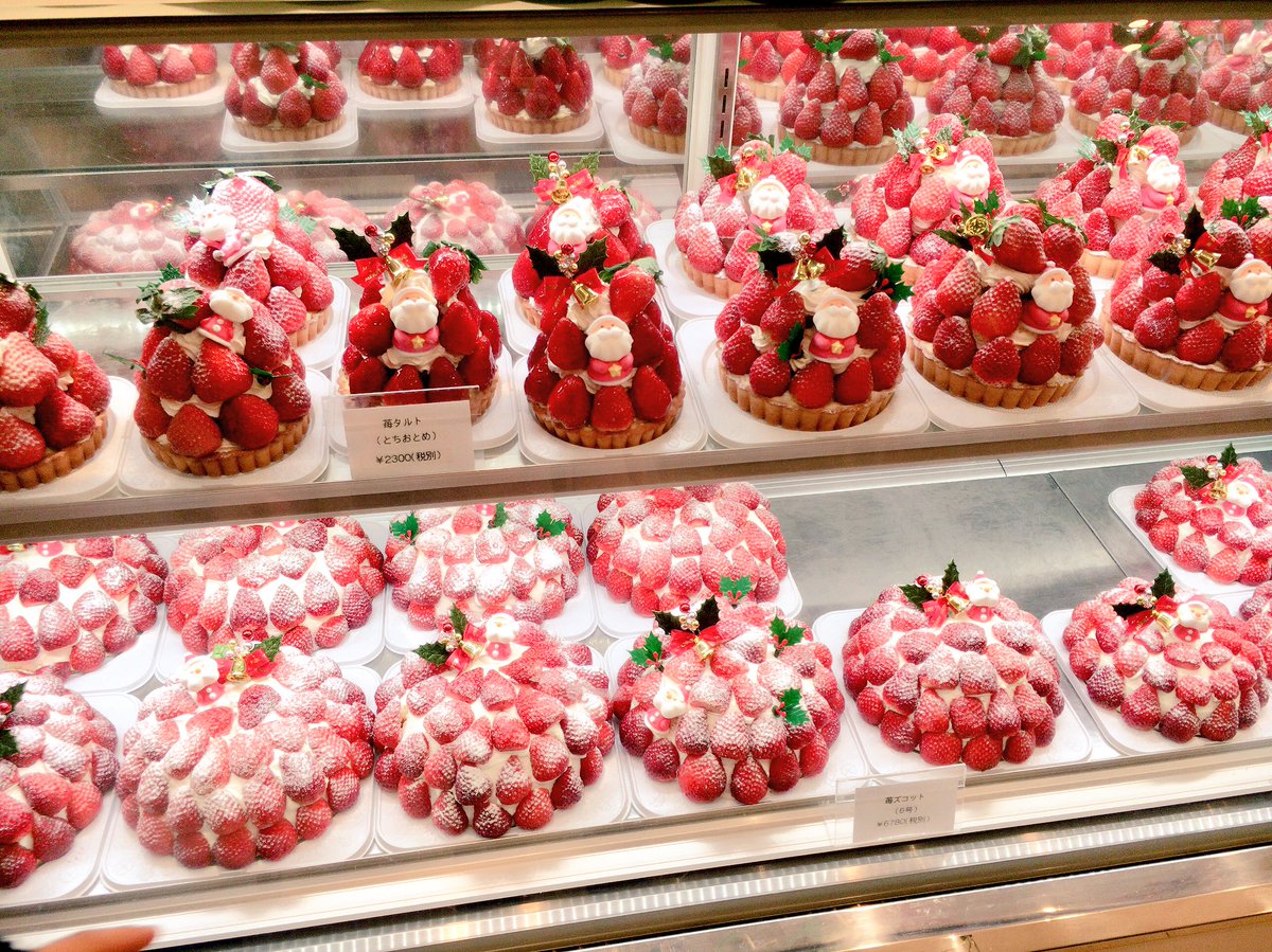 ▼一整排草莓蛋糕,鋪滿的紅色果實讓我們幾乎都看不見下面的蛋糕體。