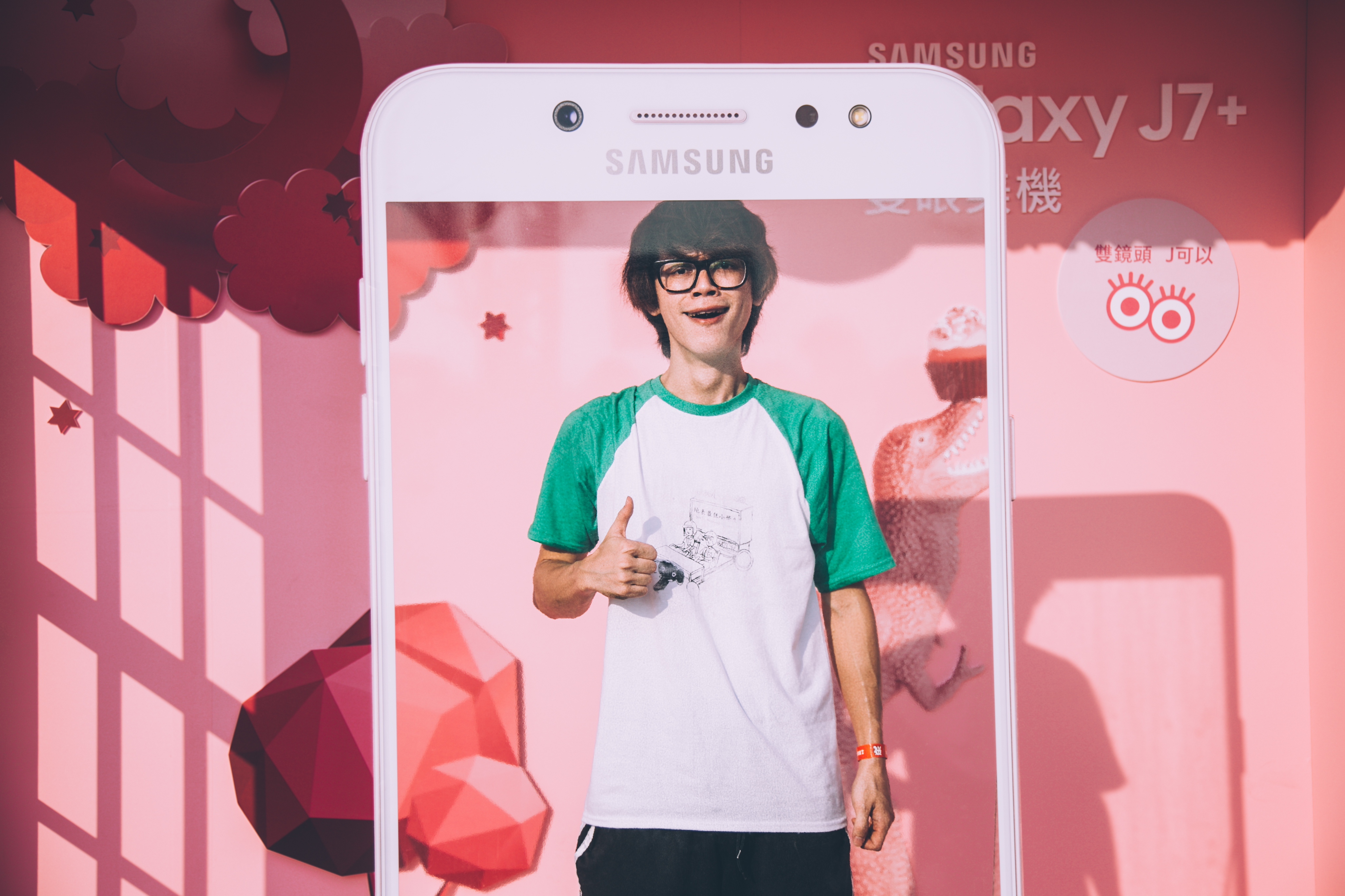 當天高人氣 J森 帶著 How How 逛遍了攤位活動,還留下許多美好回憶。像是 Galaxy J7+ 的雙鏡頭 J 可 以,互相留下對方帥氣的一面,等等!你知道雙鏡頭的作用到底是什麼嗎?就是拍出景深啊!照片更加立體,人物也更加突出!看看 How How 的臉就知道了~
