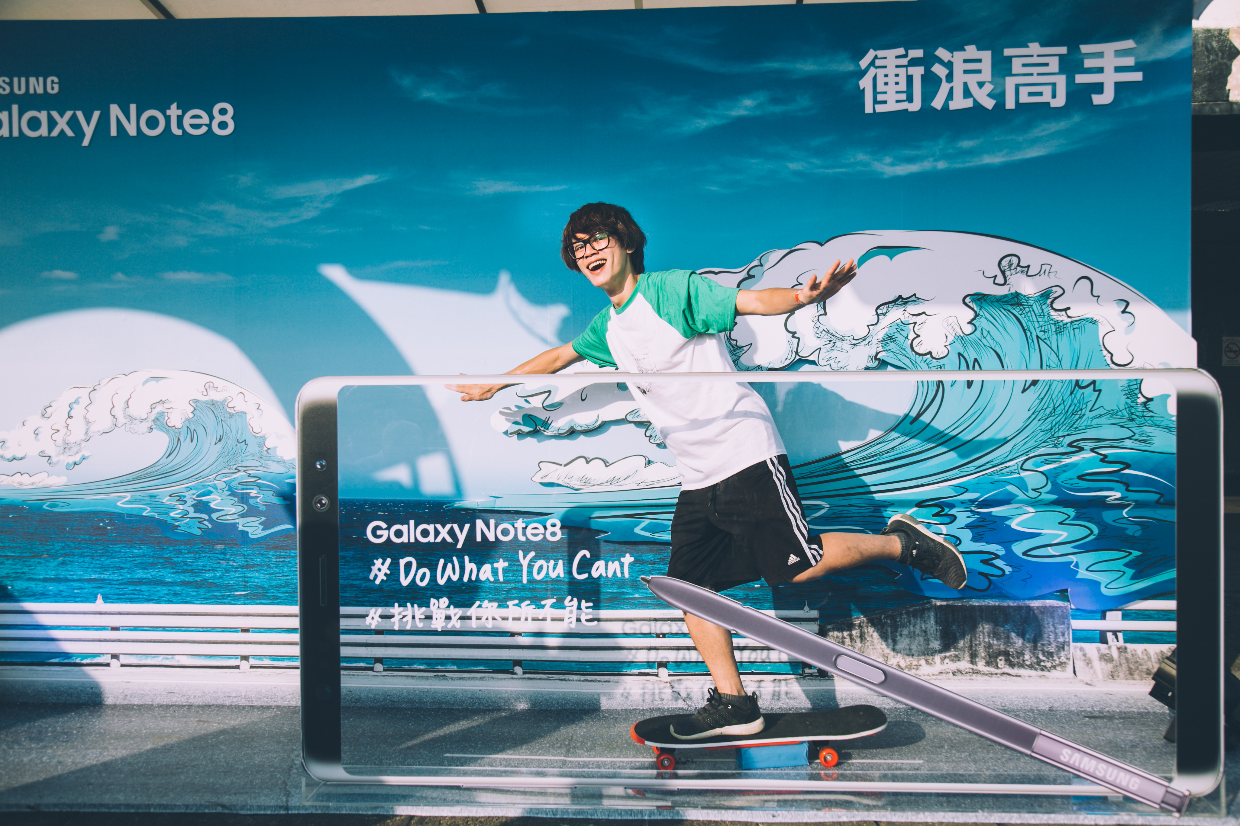 還在旁邊的 Galaxy Note8 衝浪高手一起假衝浪真拍照~當天可是跟民眾搶到這拍照的位置啊!