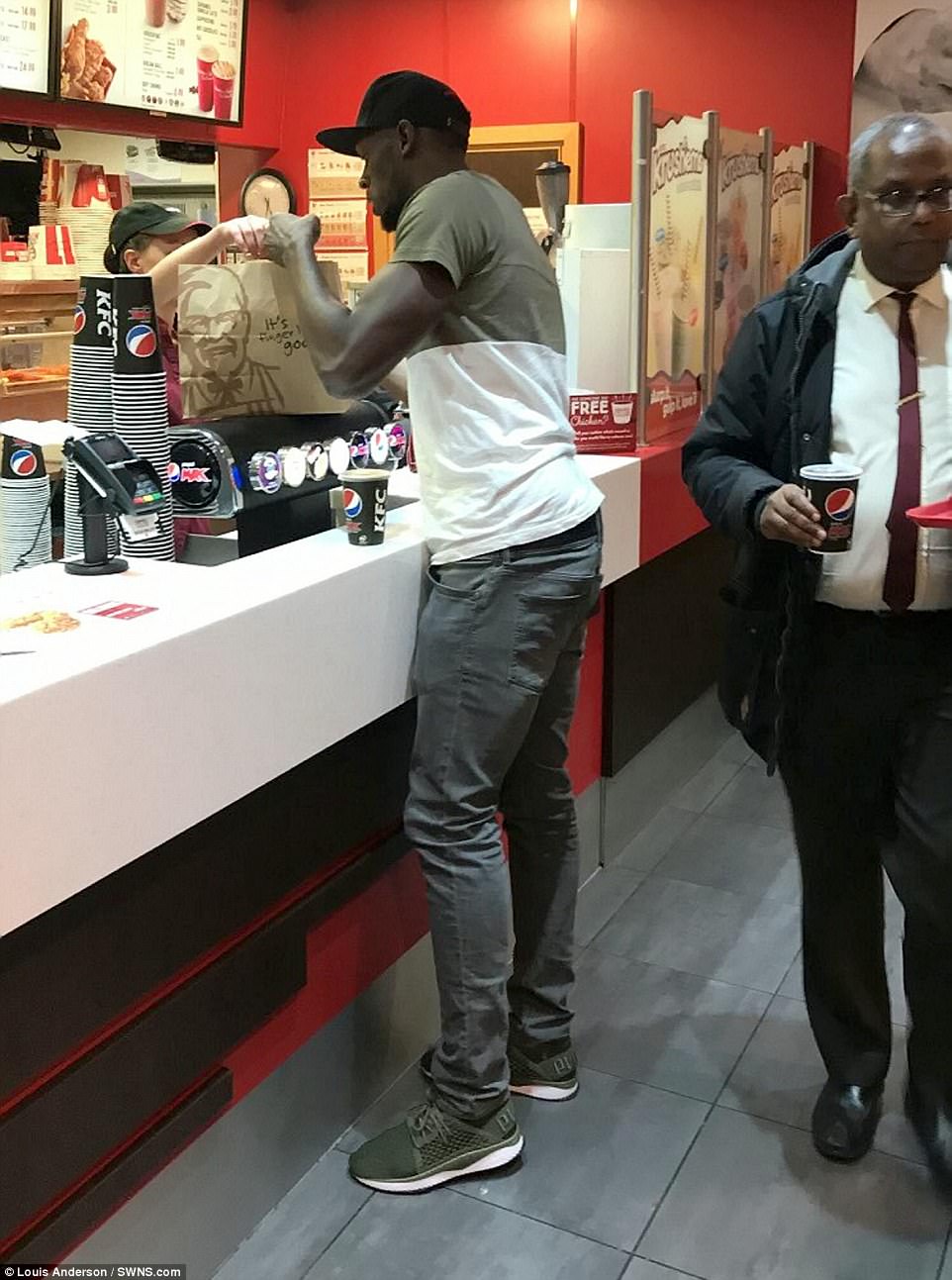 當他還是一位職業的短跑選手時,要經歷最艱苦的訓練和健身規範,更不用說飲食熱量的控管了,需要足夠的肌肉爆發力的他,絕對不能輕易的享受美食,當然包含高熱量的食物,而退休後的尤山波特( Usain Bolt ) 似乎能真正放鬆自己,在他與朋友在水煙酒吧享受完愉快的夜晚後,他更好好的享受了他的肯德基大餐,讓許多粉迷又驚又喜。( 吸菸有礙身體健康 )