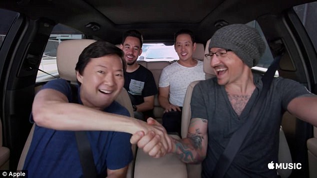 查斯特·班寧頓接受知名喜劇演員鄭肯(Ken Jeong)的即興訪問,一起錄製了活潑風趣的車上卡拉 OK 橋段,後座還包含了聯合公園的麥克·篠田(Mike Shinoda)、喬瑟夫·漢恩(Joe Hahn)兩名團員。查斯特在車上現場教了鄭肯如何唱出他的經典嘶吼唱腔:「別想著一定要唱出哪個音,要靠感覺!」他們更一起在車上唱了自己的名曲《Numb》、《In The End》和《Talking To Myself》。
