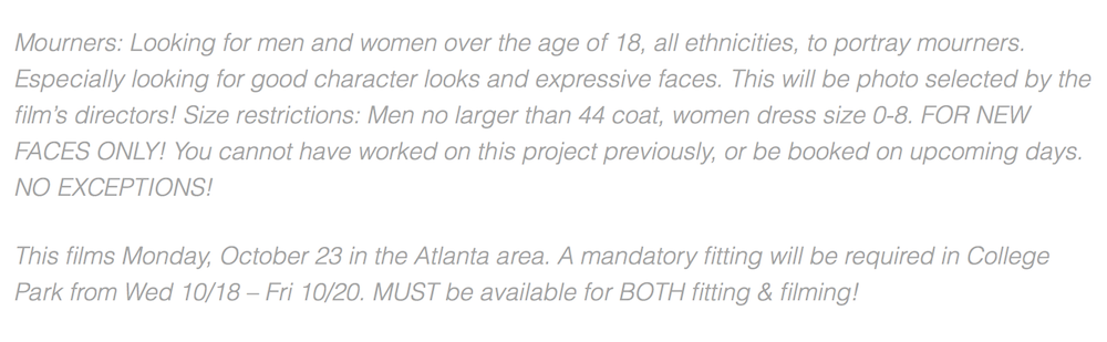 雖然在今年 6 月中宣傳《蜘蛛人:返校日》( Spider-Man : Homecoming ) 時,凱文費奇就曾證實過在《復仇者聯盟3:無限之戰》( Avengers: Infinity War ) 或《復仇者4》的確會有英雄離開大家,但當時他也指出「離開」並不代表死亡,然而在今天早上由亞特蘭大的娛樂機構釋出的消息中指出,他們正為了《復仇者4》尋找一批「送葬者」。