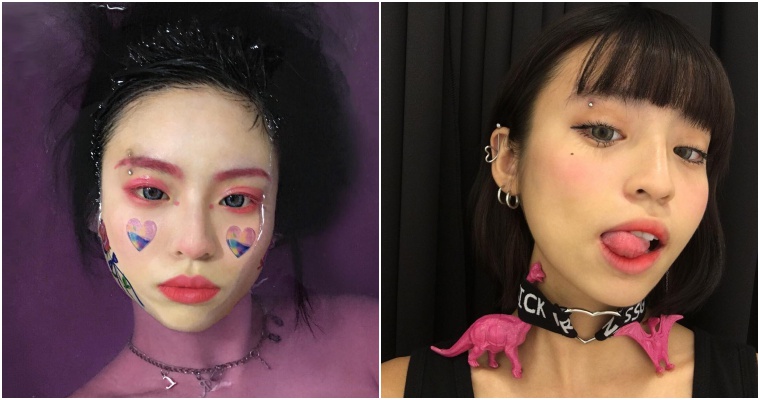 不只穿搭浮誇從小細節上都能看出內在的「浮誇因子」,妝容方面「粉紅愛心妝」「愛心眉毛妝」、「閃閃亮片妝」、「暗黑惡女妝」⋯⋯等等這些獨特中帶點趣味的妝容子妮都能輕鬆駕馭!至於特殊飾品部分很多都是她自己純手工製作,可愛又古怪,十分適合愛搞怪的女孩們!