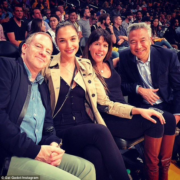 ▼蓋兒加朵特別與華納兄弟的工作夥伴一起來看湖人對快艇的賽事,在合照時蓋兒加朵還將左手放在導演派蒂·珍金斯的腿上,可見兩人私底下真的是親密好友。