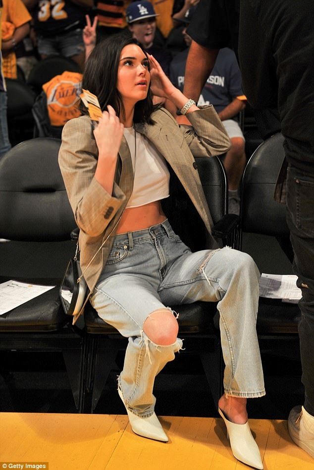 ▼坎達兒·珍娜 179 公分的模特兒身高,加上纖瘦的腰身,以長版西裝外套搭配破壞牛仔褲時尚現身,成為了場邊的正妹焦點,在離開球場時也被許多民眾追逐要簽名。